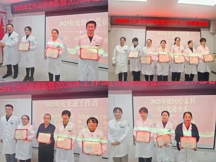 第四项议程由中心主任助理高杰同志宣读《关于表彰2025年度先进集体和先进个人的表彰决定》。中心共评选出先进科室2个,优秀家庭医生团队1个;优秀党员3名,优秀管理者2名,医疗文书书写先进个人3名,先进工作者19人。获奖的先进集体和个人,在全体职工的掌声中分别上台领奖,脸上洋溢着收获的笑容。