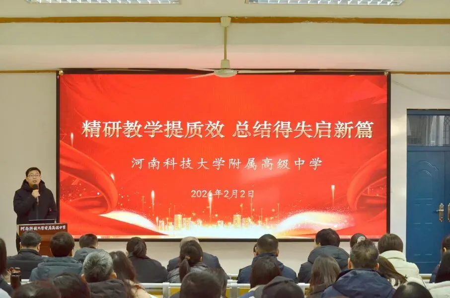 2026年2月2日下午,河南科技大学附属高级中学2025-2026学年第一学期教学教研工作总结会议在实验楼会议室召开。学校领导班子、各学科中心主任、备课组长及年级组长参会,复盘过往、总结经验、谋划后续工作。