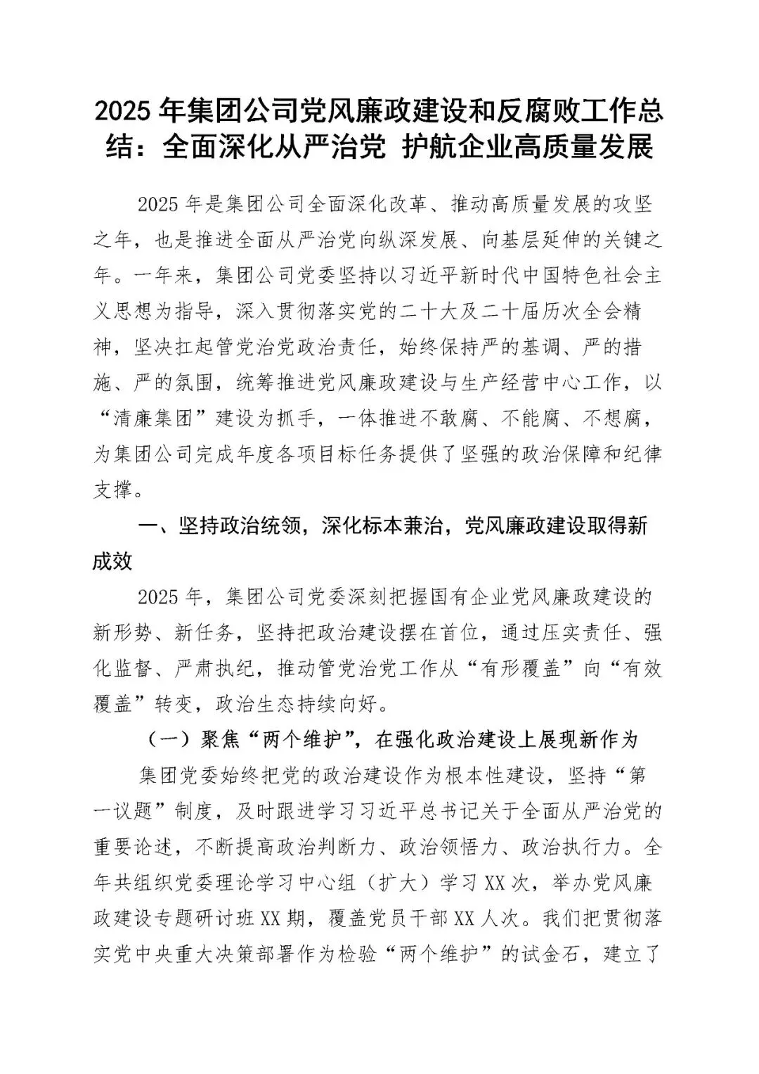 >2025年集团公司党风廉政建设和反腐败工作总结