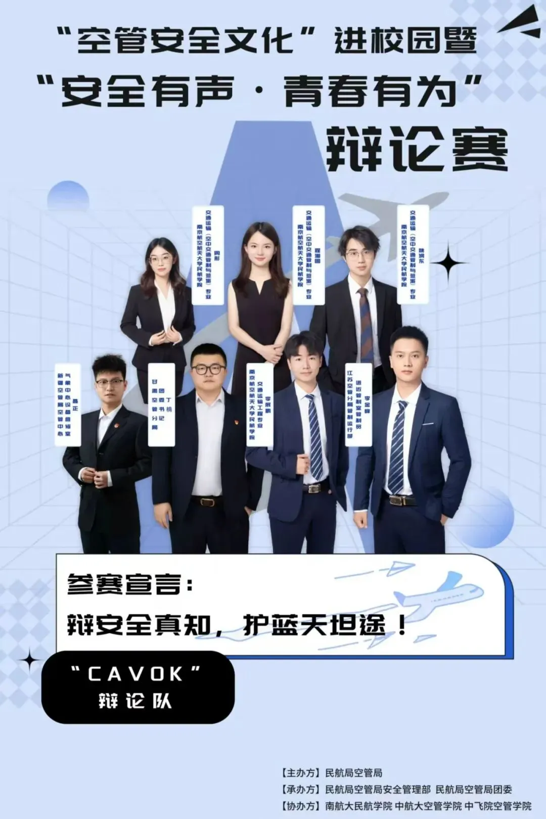 11月,为培育和弘扬空管安全文化,民航局空管局安全管理部、团委组织开展“空管安全文化”进校园暨“安全有声·青春有为”主题辩论赛活动,新媒体工作组协助空管局团委完成主题辩论赛的宣传海报。