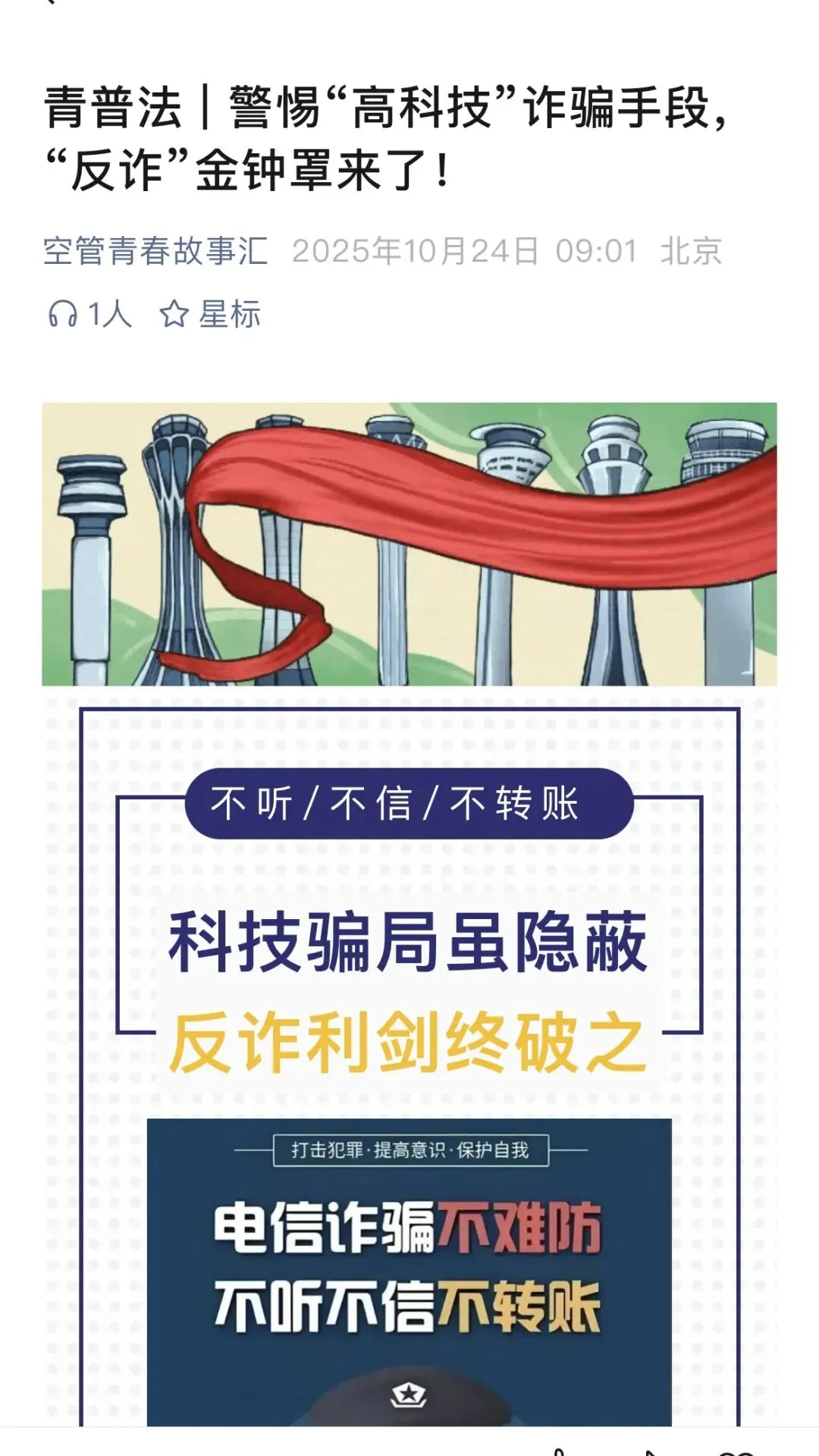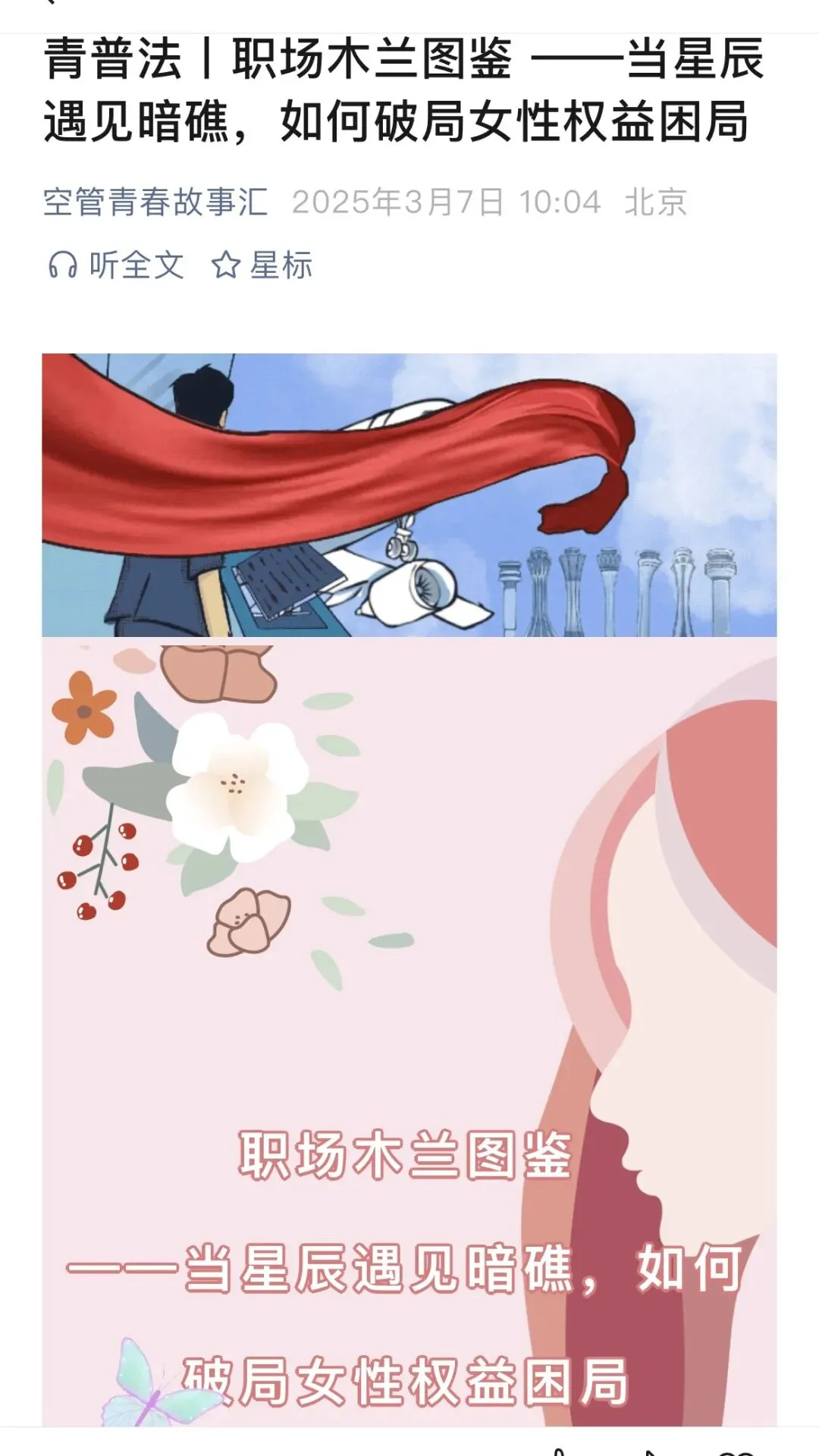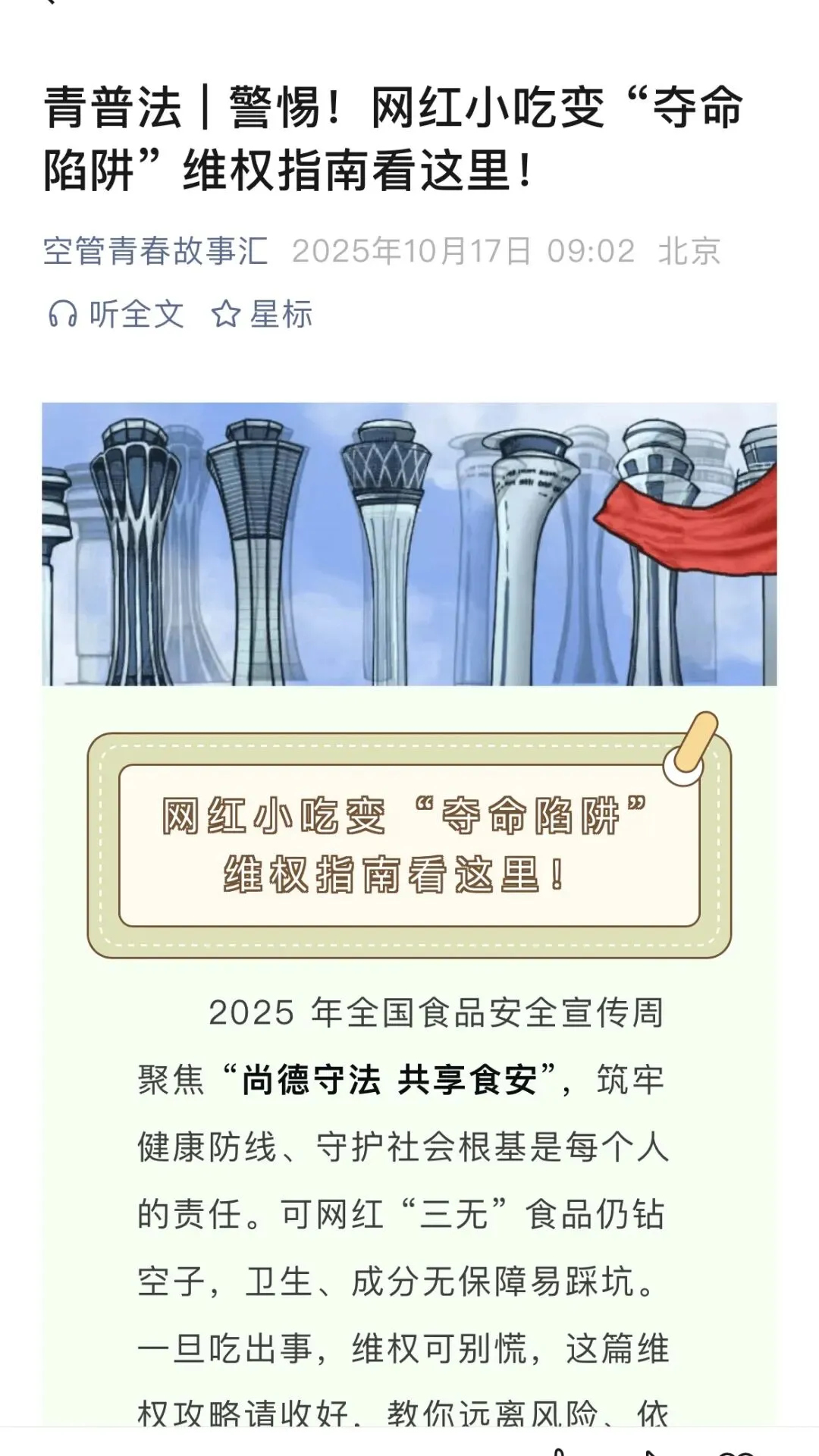 全年,新媒体工作组聚焦职场维权、反诈科普、食品安全等热点话题,精心策划推出 “青普法” 主题图文 6 篇,在 “青春护航 — 华东空管”“空管青春故事汇” 两级微信公众号同步发布。系列图文涵盖 “职场木兰图鉴”“315 特辑”“法治护航,维权有光”“一眼看穿电信诈骗” 等内容,既突出宣传的实用性,又创新运用 SVG 动画等交互形式,有效提升了读者的阅读体验。