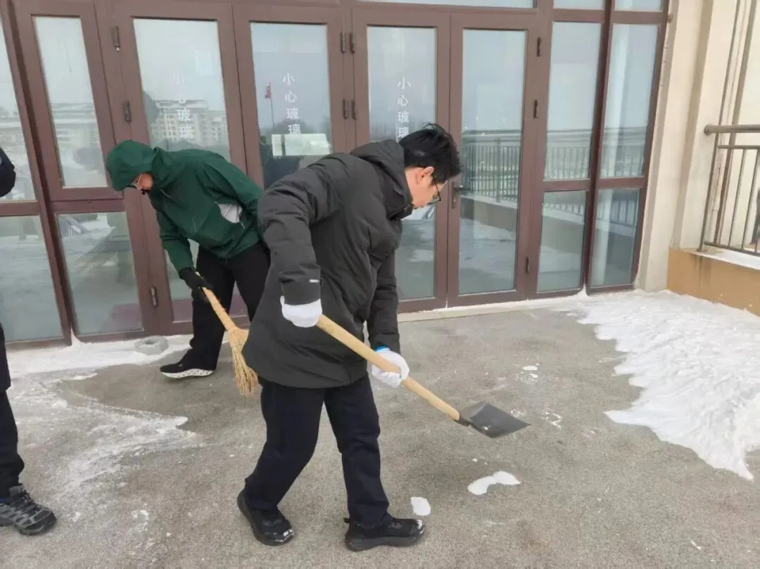 1月19日,校园内多处出现积雪结冰现象,给全校师生日常出行带来安全隐患。为切实保障校园通行安全,学校向全体教职工发出除雪倡议,党员干部教师带头响应,热心教职工积极参与,部分学生学生课后自发加入,大家齐心协力共同投身校园除雪工作。