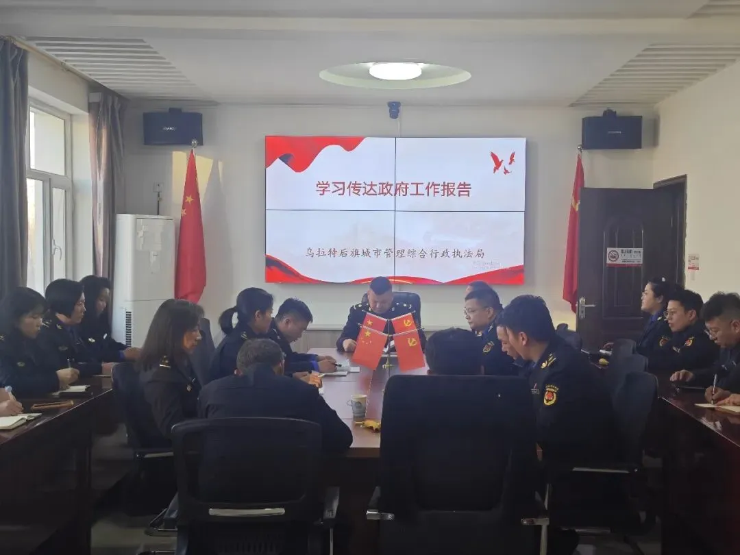 为深入贯彻落实旗“两会”精神,精准把握旗政府工作报告部署要求,同步深学笃行党的二十届四中全会精神,切实把全局干部职工思想和行动统一到旗委、旗政府决策部署上来,近日,乌拉特后旗执法局召开专题学习会议,集中传达学习旗“两会”精神及政府工作报告核心内容,结合城市管理工作实际研究部署贯彻落实举措,全体干部职工参加会议。