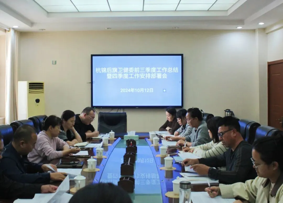 为及时了解前三季度各项工作重点目标完成情况,明确下一步工作目标任务,10月12日,杭锦后旗卫健委召开前三季度工作总结暨四季度工作安排部署会,旗卫健委党组书记、主任闫秀丽主持会议。