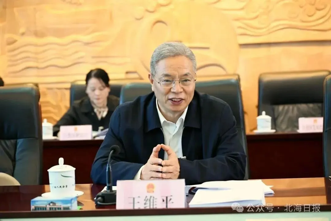 王维平说,报告深入贯彻党的二十届四中全会和中央经济工作会议精神,贯彻落实习近平总书记关于广西工作论述的重要要求,是一份高举旗帜、明确方向,登高望远、鼓舞人心,求真务实、催人奋进的好报告。蓝图已经绘就,关键在于落实。要更加坚定拥护“两个确立”、坚决做到“两个维护”,全面深刻准确领会和把握“十五五”战略部署和今年的目标任务,深刻认识机遇和挑战、目标和方向、责任和使命,进一步增强稳中求进、攻坚克难的信心和定力,树牢实干为要的鲜明导向,树立和践行正确政绩观,因势而谋、乘势而上,切实把发展的目标、任务、方略、思路、举措、重点转化为生动的实践、奋斗的成效。北海市要切实把思想和行动统一到自治区党委、政府决策部署上来,“站在天安门城楼上”看广西、谋北海,把发展嵌入到全区大局之中,找准着力点和突破口,充分发挥自身优势,厚植高质量发展根基,走好切合北海实际发展之路,为奋力谱写中国式现代化广西篇章作出更大贡献。