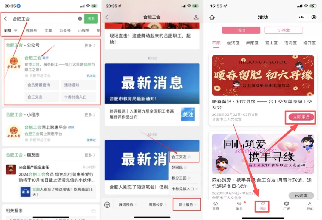 方式二:点击微信“搜一搜”搜索“合工交友”