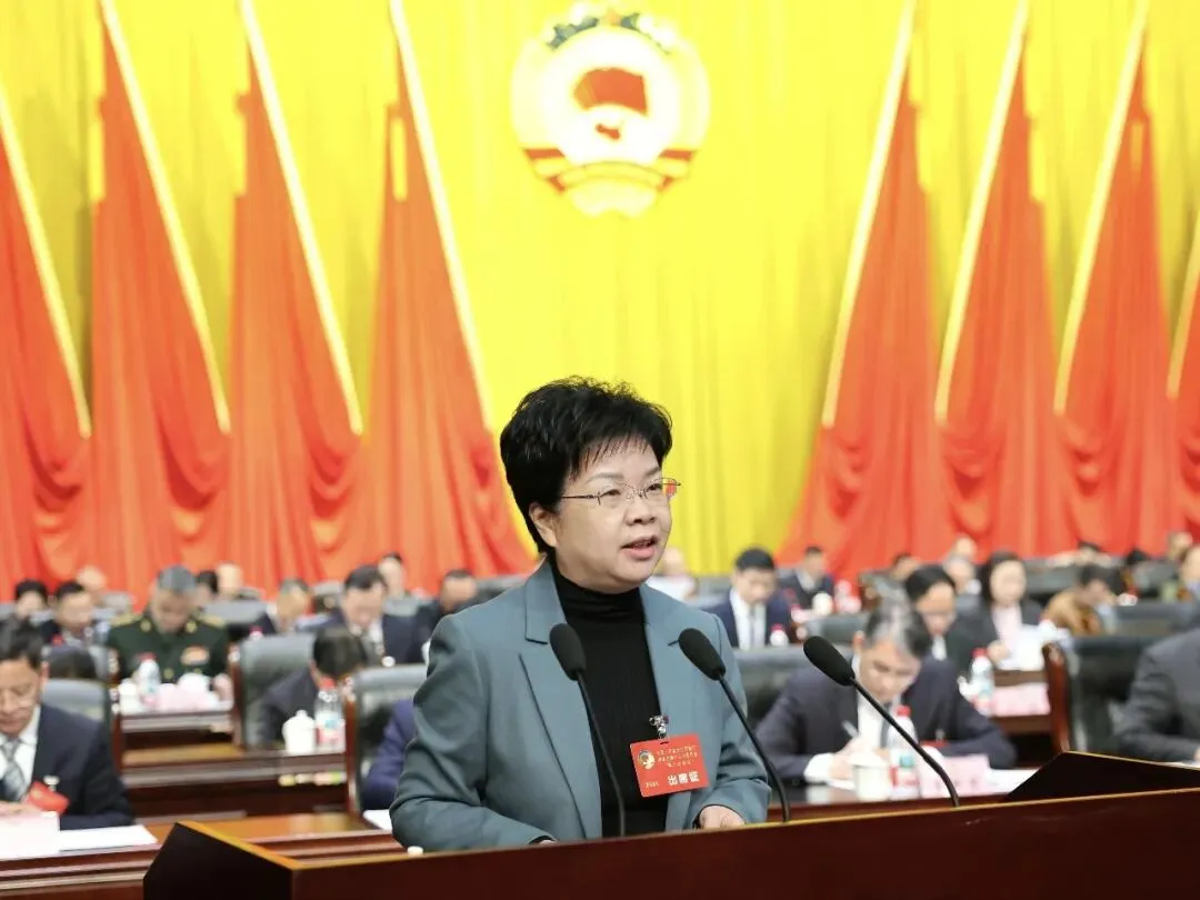 ▲聂晓葵代表政协萍乡市第十四届委员会常务委员会向大会报告工作 (摄影/李桂东)