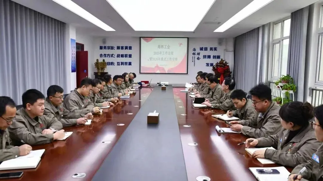 2月3日下午,海林公司工会在办公楼2号会议室召开2025年度工会工作总结暨2026年重点工作安排会议。公司副总经理刘刚、工会委员会委员、各部门工会工作负责人参加会议。会议由公司监事会主席、工会主席刘兴民主持。