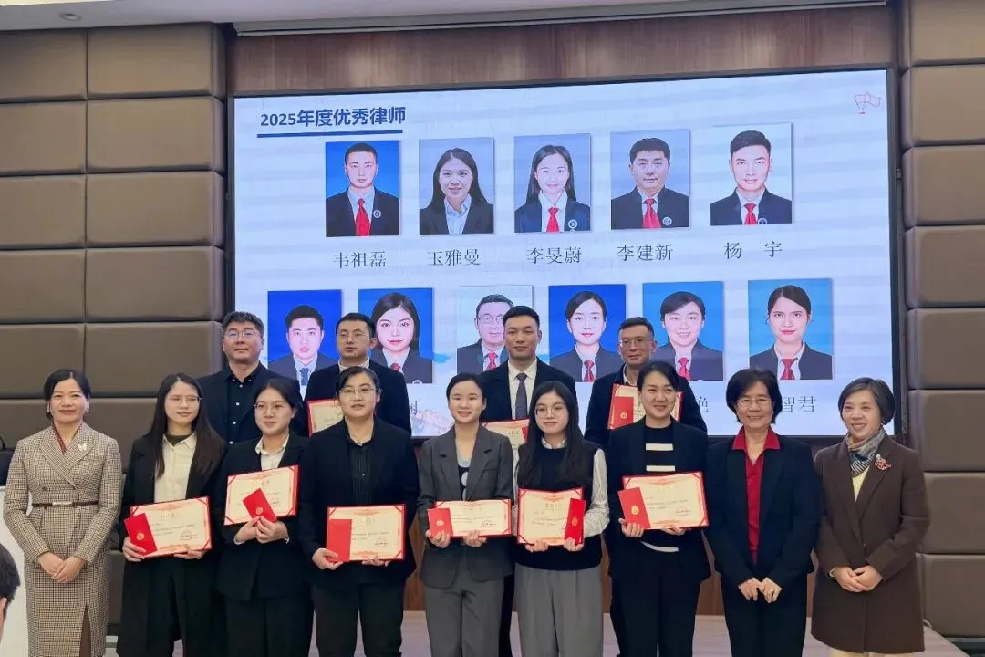 大会最后,对2025年度表现突出的优秀律师与优秀员工进行表彰。欣和所高级合伙人代表依次为获奖者颁发荣誉证书,肯定他们在过去一年中的辛勤付出与突出贡献,同时激励全体同仁以优秀为标杆,奋勇争先。