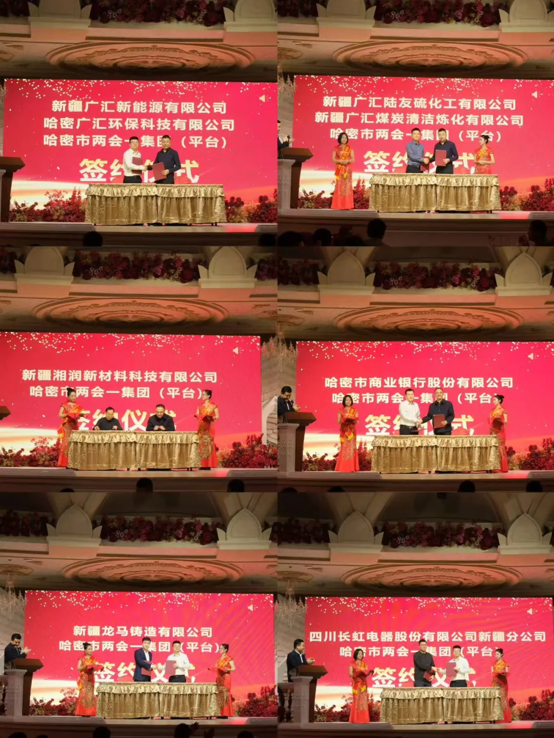 为推动资源整合与生态共建,会议举行了“两会一集团(平台)”与多家重点企业的战略合作签约仪式。新疆广汇新能源有限公司、哈密广汇环保科技有限公司、新疆广汇煤炭清洁炼化有限公司、新疆广汇陆友硫化工有限公司、新疆湘润新材料科技有限公司、哈密市商业银行股份有限公司、新疆龙马重工集团有限公司、四川长虹电器股份有限公司新疆分公司等八家重点企业与“两会一集团(平台)”相关主体现场签约,标志着在产业协作、金融服务、市场拓展等领域合作迈出实质性步伐。