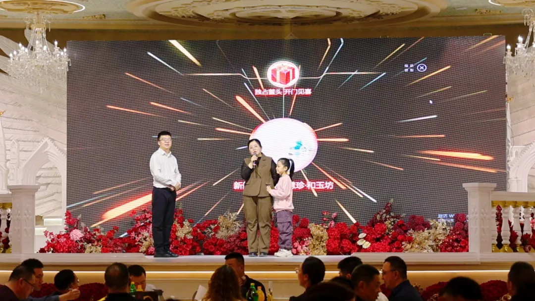 交流晚宴特别设置了“班子团拜”环节,“两会一集团(平台)”领导班子集体登台向全体来宾送上新春祝福。随后播放了来自伊吾县商科工信局、工业园区管委会及广汇企业领导的《伊吾县新春祝福》视频,体现了区域协同与深厚情谊。