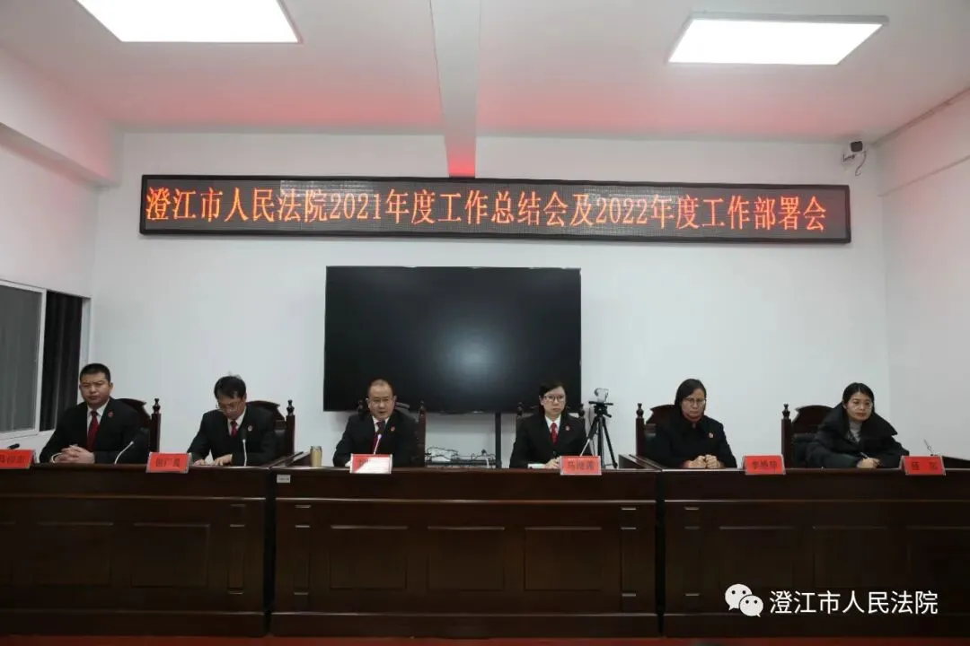 澄江法院院领导班子成员分别对分管领域2022年度各项工作进行总体部署安排。会议对《关于澄江市人民法院通过第一批政法队伍教育整顿评估验收的批复》进行了通报。党组书记、院长刘宝金对保密工作、春节期间纪律作风建设和加强法院意识形态工作等进行了具体部署和强调。