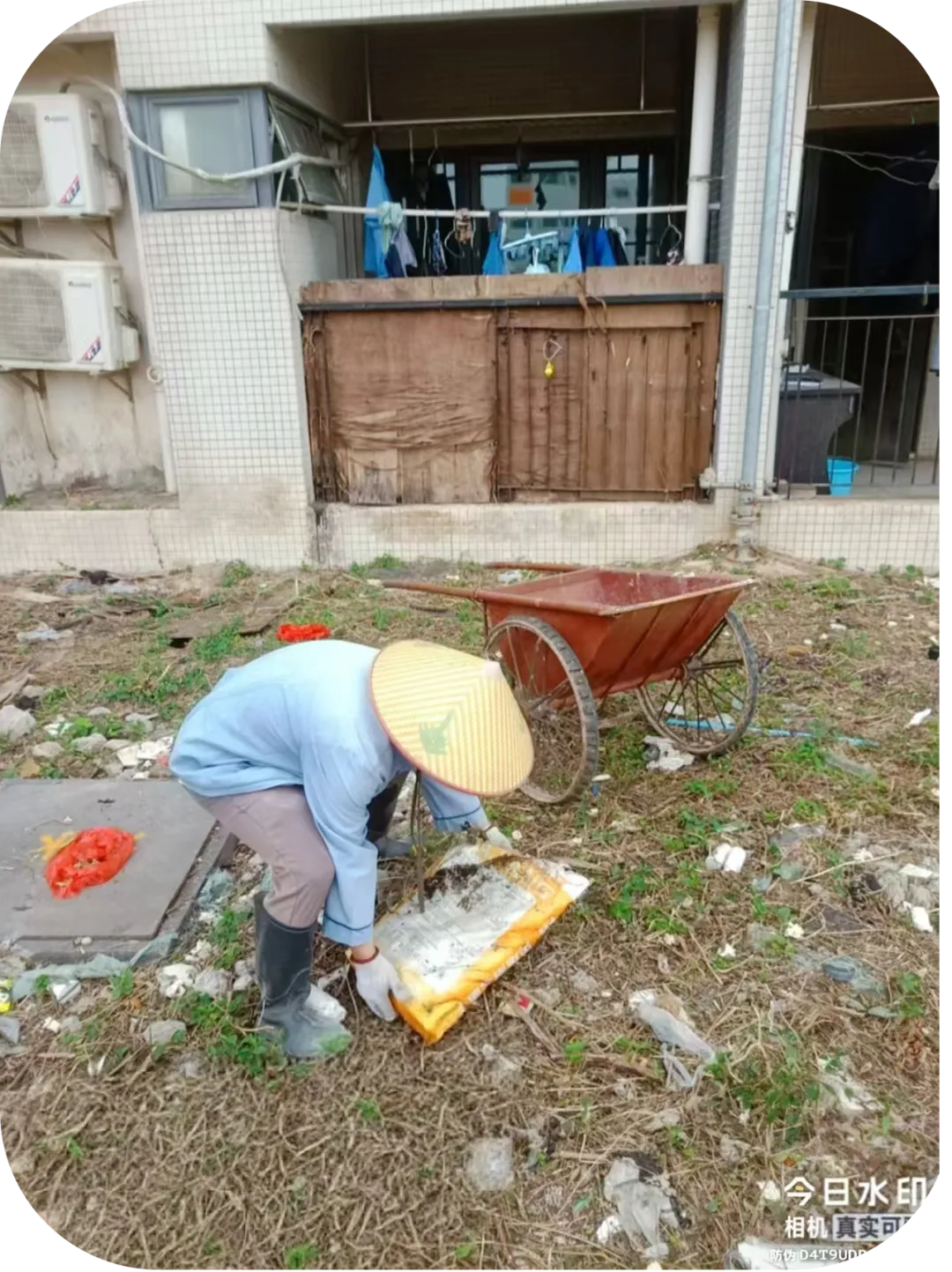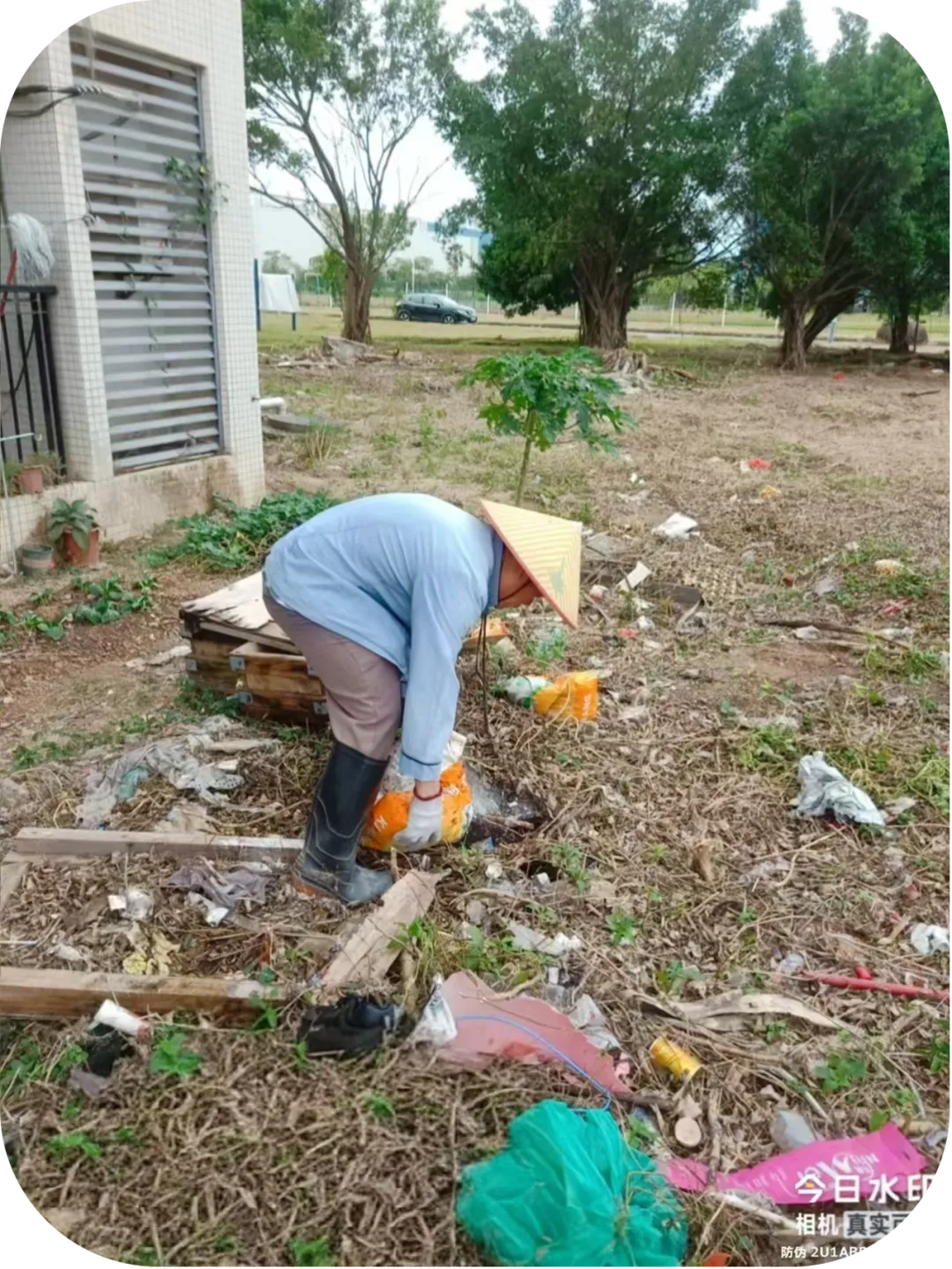 清理宿舍周边垃圾。