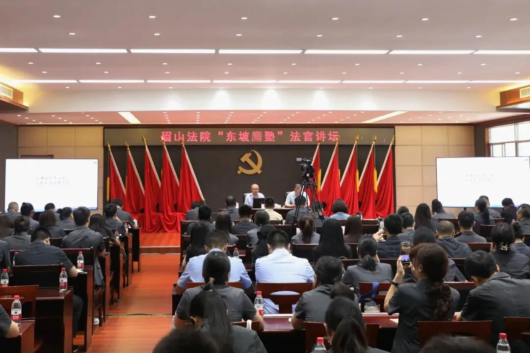 眉山法院持续壮大“浩然东坡”文化矩阵,推进兴文化人、以文兴业,培优法治文化,举办“东坡廌塾”法治讲堂系列活动,邀请华东政法大学教授作专题授课,着力提升干警专业素养与法治文化认同。