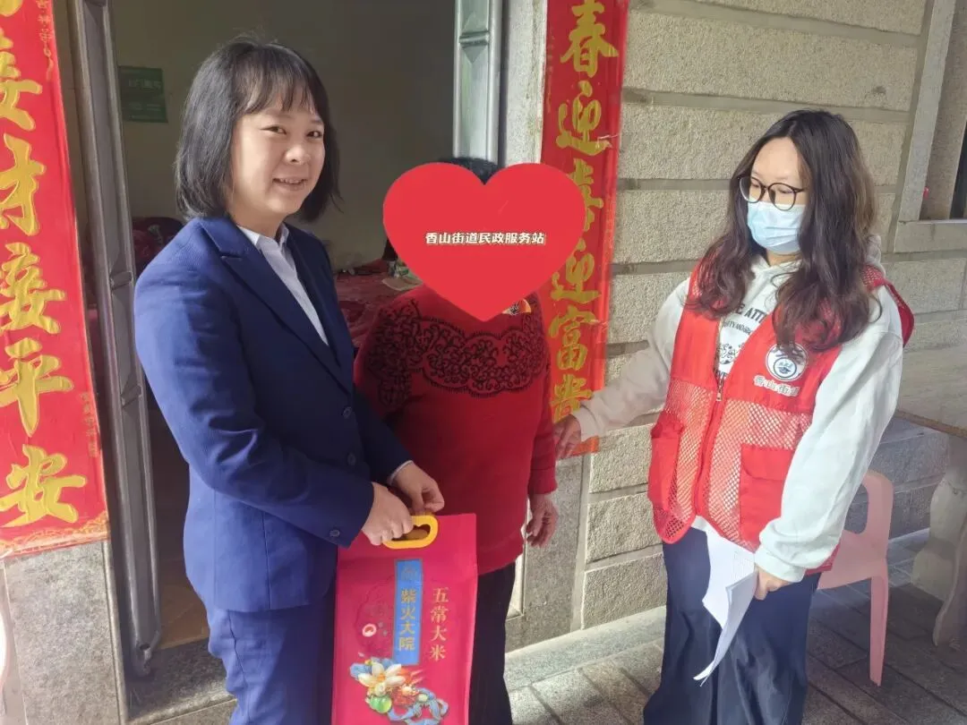 1月15日上午,香山街道民政服务站聚焦困难群体新春需求,携手交通银行翔安支行开展新春入户慰问活动,工作人员先后前往霞浯社区、莲河社区,为12名低保对象送上大米、食用油等慰问品,在面对面的交流中传递新春祝福与社会关怀,切实让辖区困难群体感受到冬日里的温暖与牵挂。