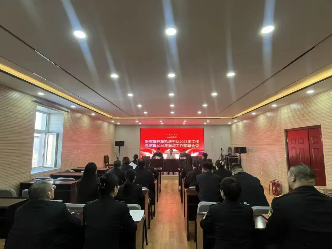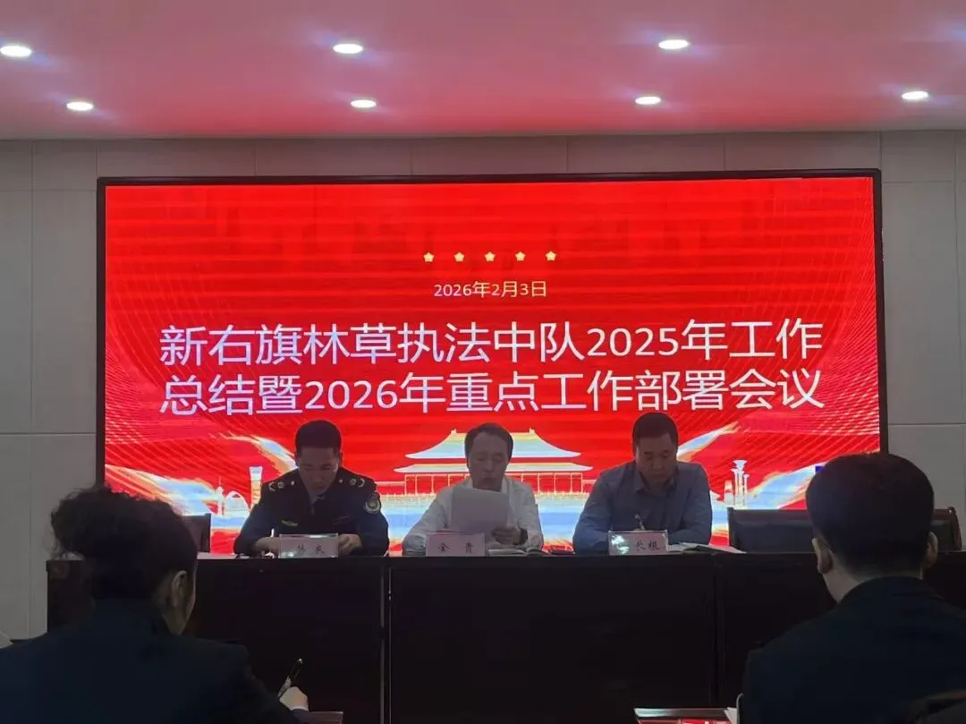 2026年2月3日,新巴尔虎右旗林业和草原局执法中队召开全体队员会议,全面复盘2025年度工作成效,系统部署2026年重点任务。局党组书记、局长到会指导并讲话,副局长吴长根作工作部署,中队全体队员参会,会议凝聚起“同心聚力谋发展、实干担当谱新篇”的强大共识。