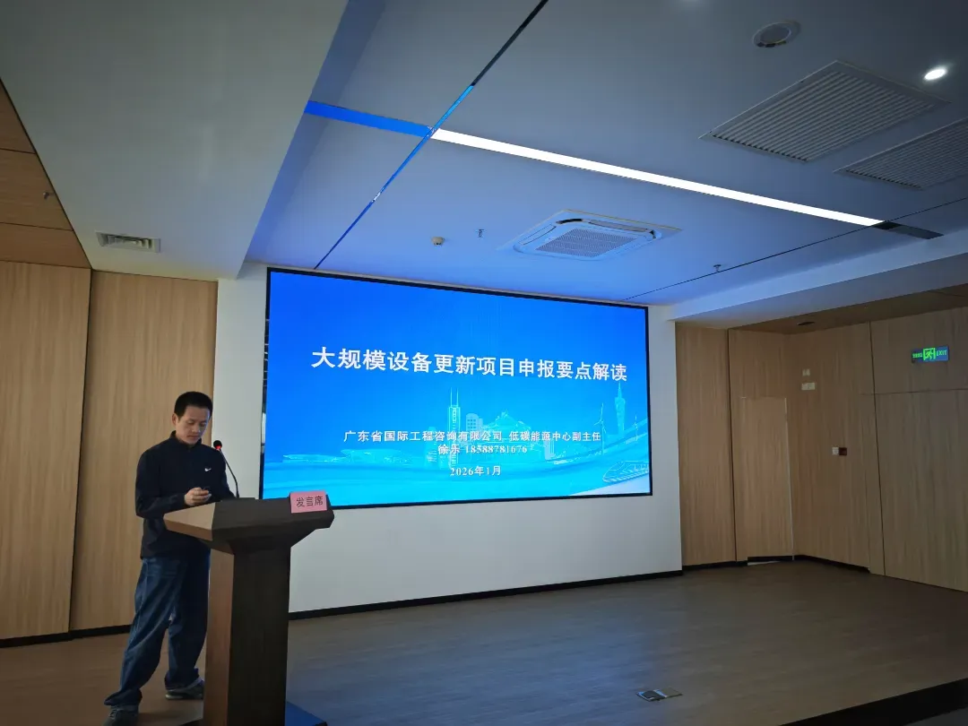 广东省国际工程咨询有限公司低碳能源中心副主任、高级工程师徐乐受邀进行政策解读,围绕“超长期特别国债支持设备更新项目申报”进行了详尽解析,助力商协会发挥桥梁纽带作用,引导会员企业精准对接政策红利。