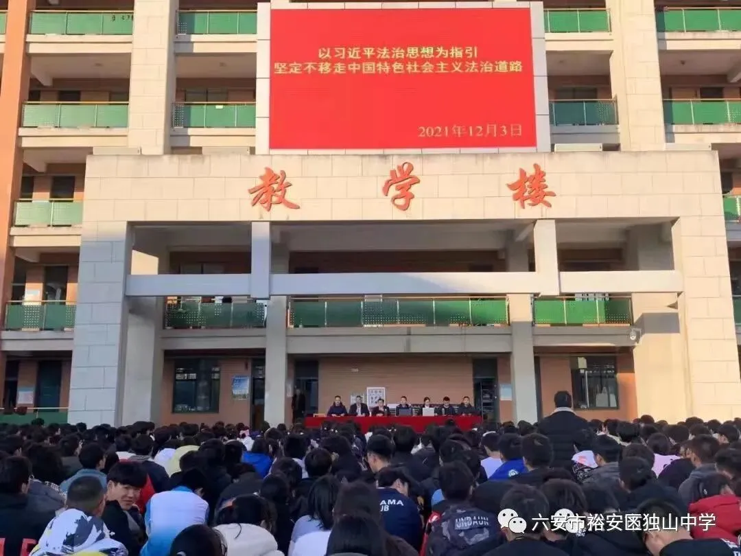 加强学生行为习惯养成教育、丰富德育活动形式:组织学生学习《中小学生守则》、《中学生日常行为规范》、《六安市独山中学学生手机使用管理办法》、《独山中学学生违反校规校纪处分条例》、《校园欺凌专项治理工作方案》等各项规章制度;利用周一升旗仪式及国旗下主题讲话,对学生进行安全教育、养成教育、礼仪教育、爱国主义教育、心理健康教育、树立理想前途教育;开展高一新生军训,组织学生观看“开学第一课”;开展宪法宣传周法治专题报告会,积极组织开展裕安区第四届“关爱明天·普法先行”青少年普法教育征文比赛和“学党史、明法纪”演讲比赛。