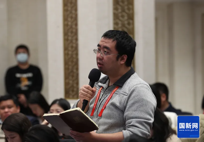 中央广播电视总台央视记者提问(刘健 摄)