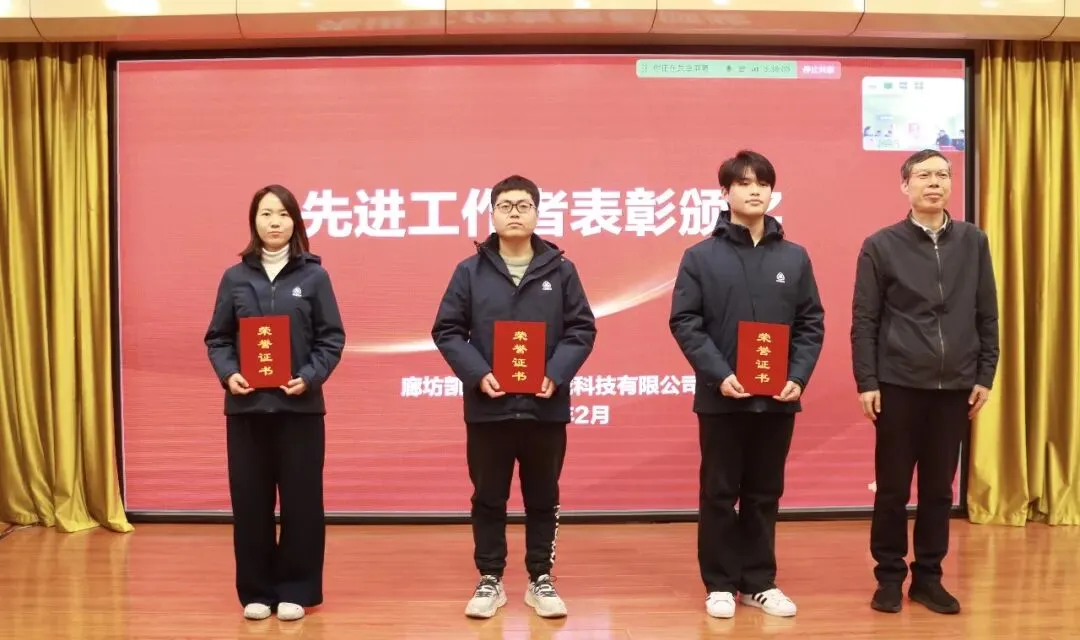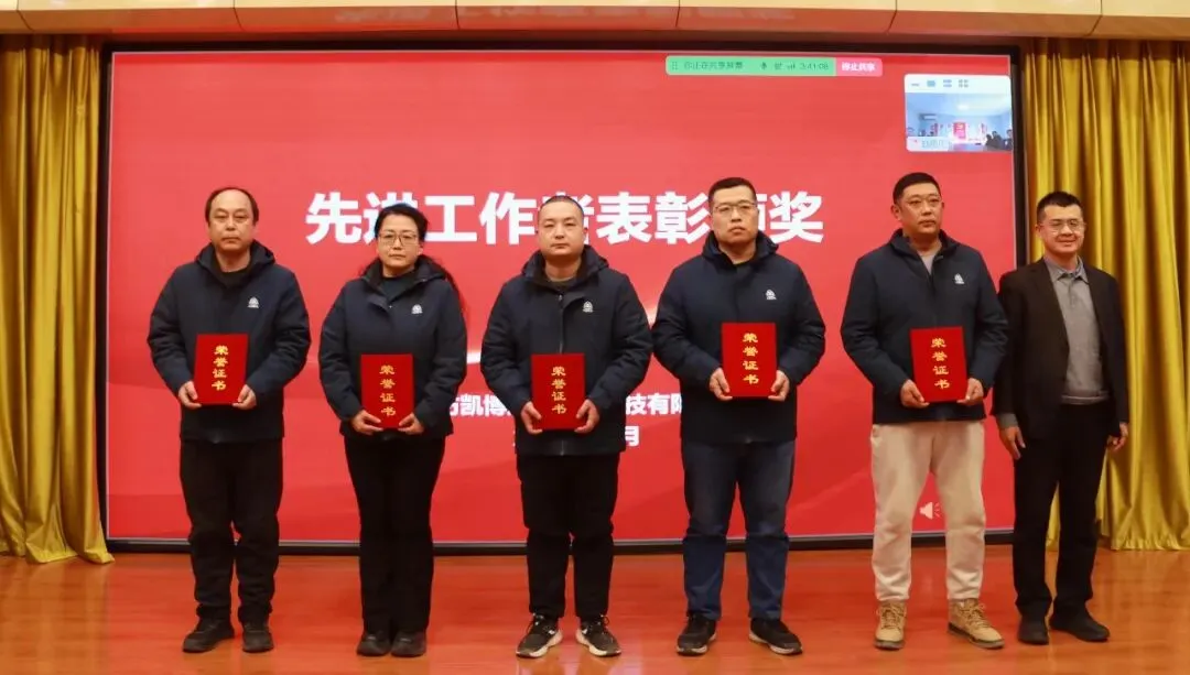 凯博科技副总经理卢宏伟宣读了2025年度评优表彰决定,与会领导为先进获得者颁奖。