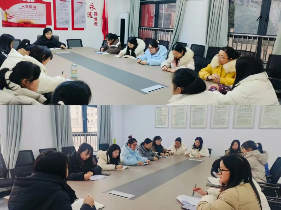 会议伊始,园长阮扬带领全体老师进行了政治学习,并着重强调师德师风建设,要求全体教职工要始终牢记“立德树人”的根本任务与教育初心,以专业能力护航幼儿健康成长,为学前教育高质量发展贡献力量。 教育教学方面,吴琼老师对本学期工作进行了梳理总结。幼儿园稳步开展各领域常规教学,并围绕中秋、国庆、元旦等节日组织特色主题活动,丰富幼儿在园体验。同时,注重幼儿一日生活常规的培养,通过开展公开课、业务学习等多种形式,持续提升教师教学能力。展望新学期,教育教学工作将继续以幼儿发展为中心,进一步优化课程实施,加强教研共同体建设。 财务工作方面,主任何习铃严格执行财务管理制度,规范完成秋季学期各项经费的收支核算、记账及报表编制工作,确保账目清晰、账实相符,财务信息透明公开。 后勤保障方面,副园长鲍玉芹就后勤保障工作进行总结。本学期后勤团队持续做好园舍、教学设施及玩具器材的日常巡检与维修,及时排除安全隐患,保障幼儿活动安全与教学秩序。在食堂管理上,规范食材采购至加工全流程,严把食品卫生关,落实环境清洁与消毒工作。接下来将继续强化安全责任意识,推动后勤服务精细化、规范化。 卫生保健方面,保健员胡艳老师认真落实卫生保健制度,做好幼儿晨午检及全日健康观察,完善健康档案记录与管理。常态化开展传染病预防工作,加强环境清洁消毒与通风,积极进行防病知识宣传,并依据季节特点科学制定营养食谱,保障幼儿膳食均衡。新学期将进一步加强保健知识普及和健康行为引导,促进幼儿身心健康发展。