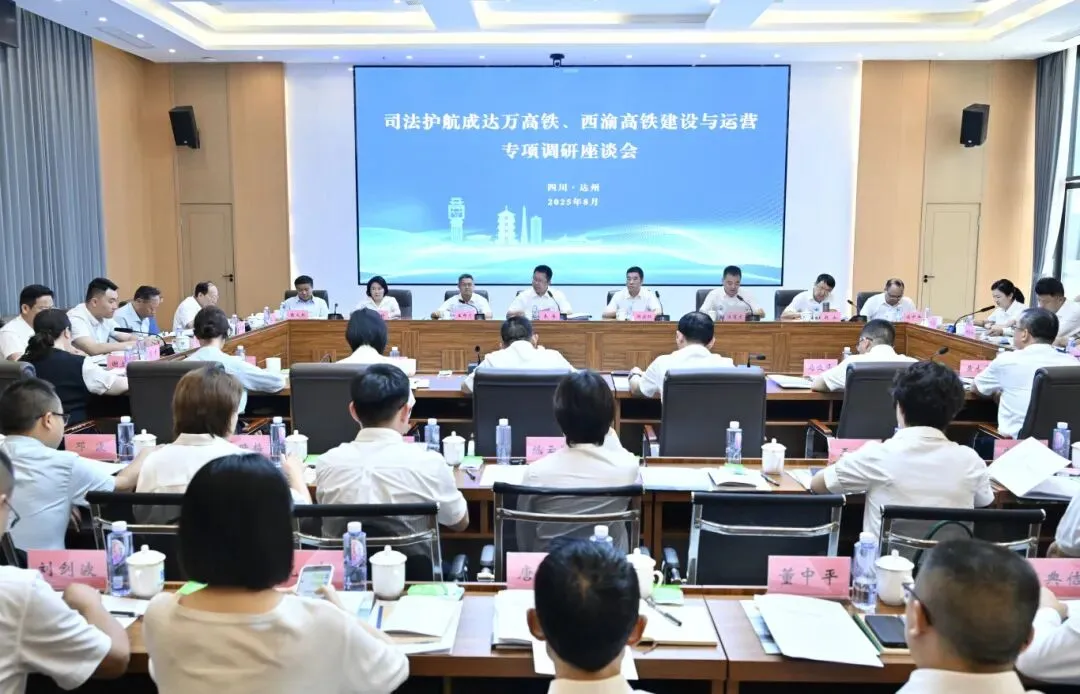 2025年8月29日,四川高院、重庆高院在达州举办了"司法护航成达万高铁、西渝高铁建设与运营专项调研活动",川渝19家法院,6家铁路建设单位,2名人大代表现场调研,交流座谈,川渝9家中院联合发布涉高铁建设典型案例,有效凝聚了服务保障双高铁项目建设的思想共识和司法力量,为成渝地区双城经济圈高质量发展注入了强劲法治动能,是川渝两地法院紧扣中心大局,主动担当作为的重要体现。