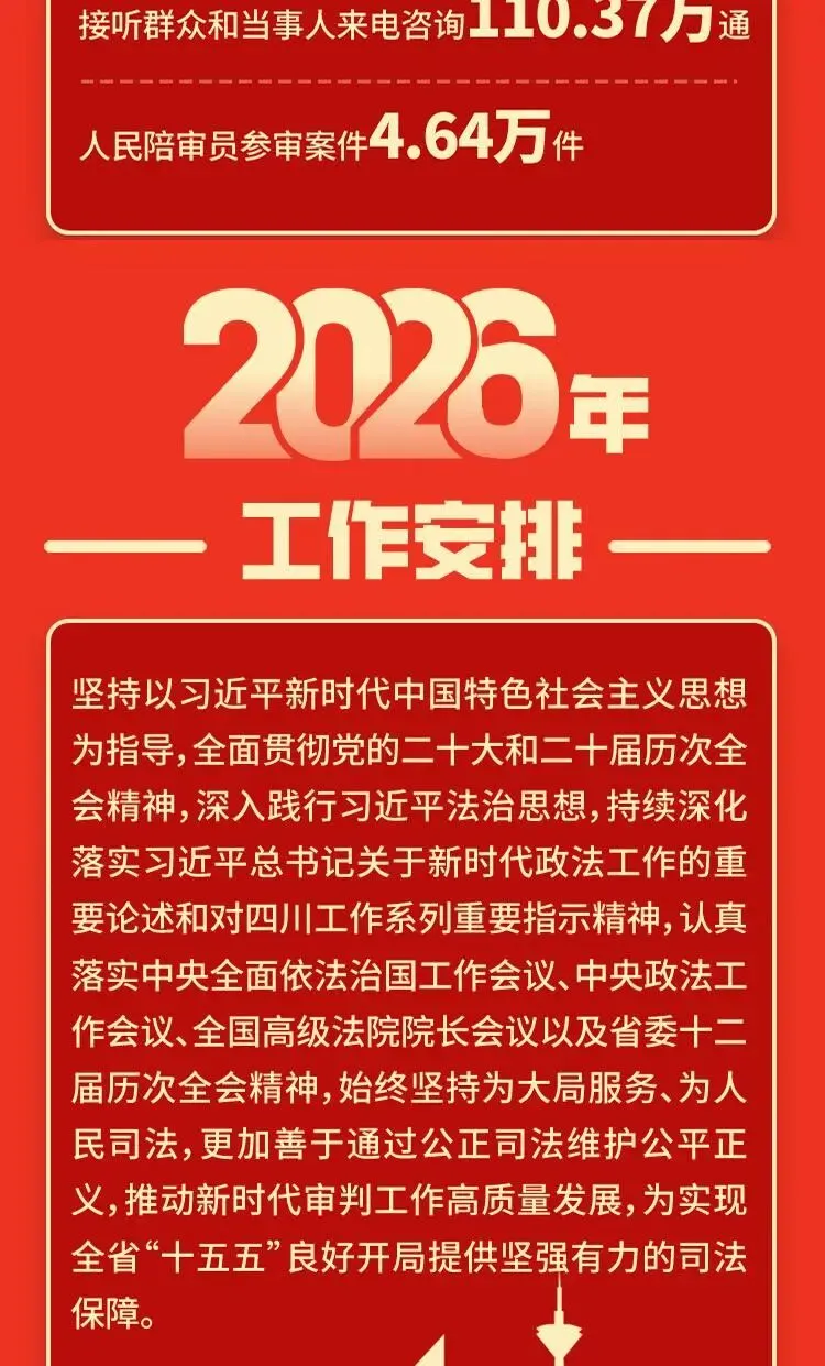 2026年2月4日在四川省第十四届人民代表大会第五次会议上,四川省高级人民法院代院长陈志君向大会作法院工作报告。