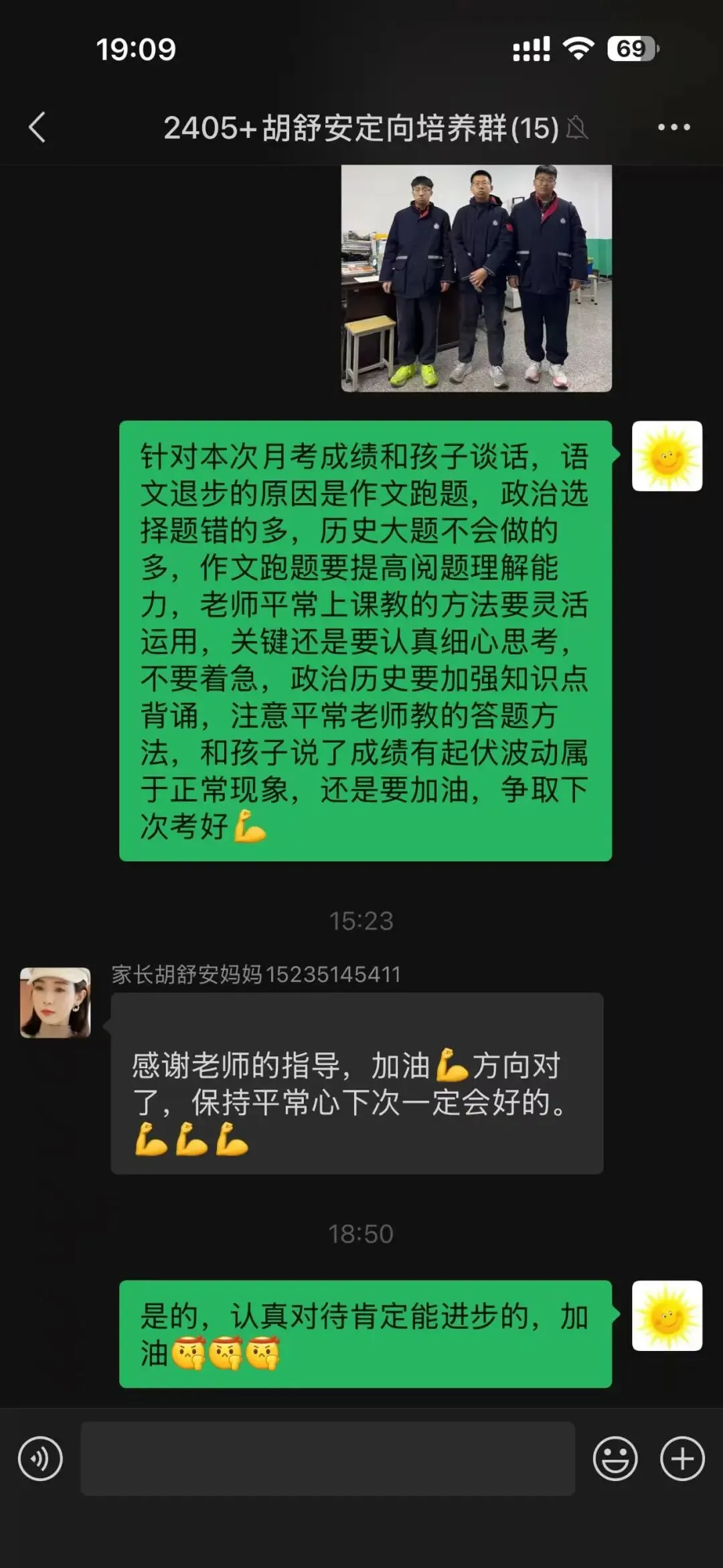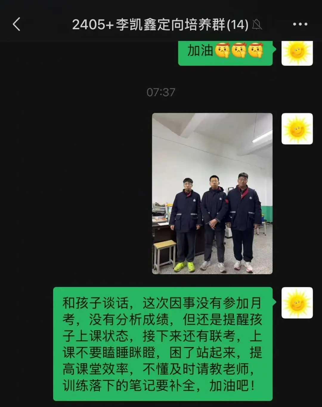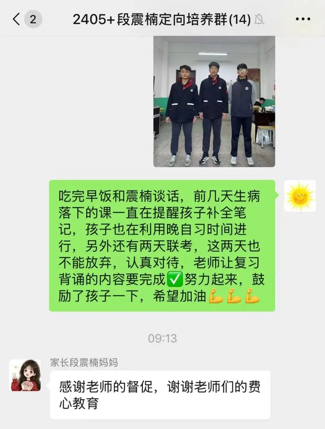 “我们知道孩子最近学习状态不好,给您添麻烦了。我们会好好和他聊聊,让他明白现在努力的重要性。”(张雨轩爸爸)