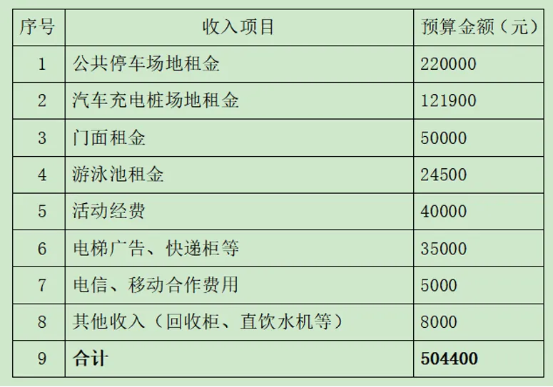 四、2026年度小区公共收益及活动经费收入预算表: