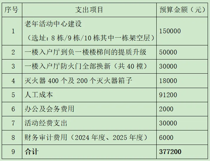 五、2026年度小区公共收益及活动经费支出预算表: