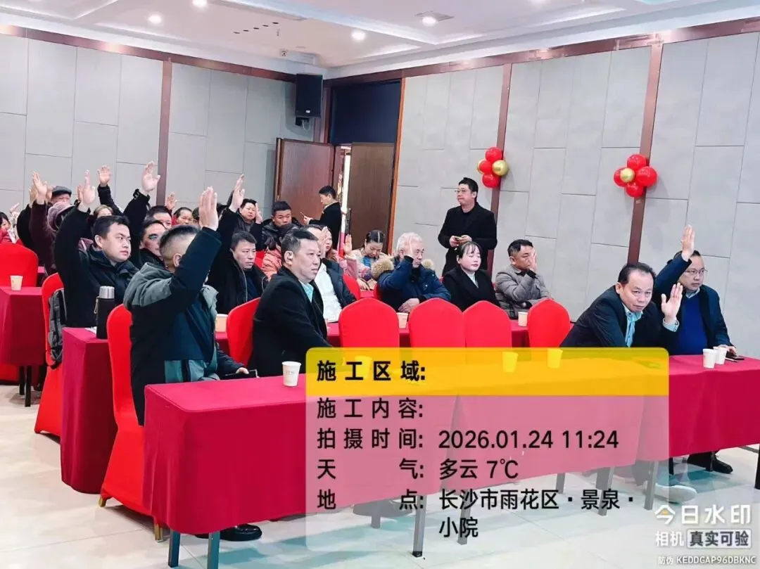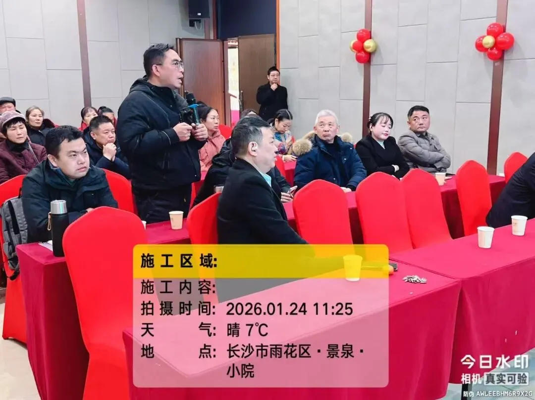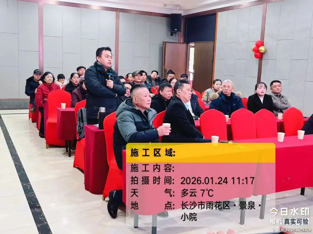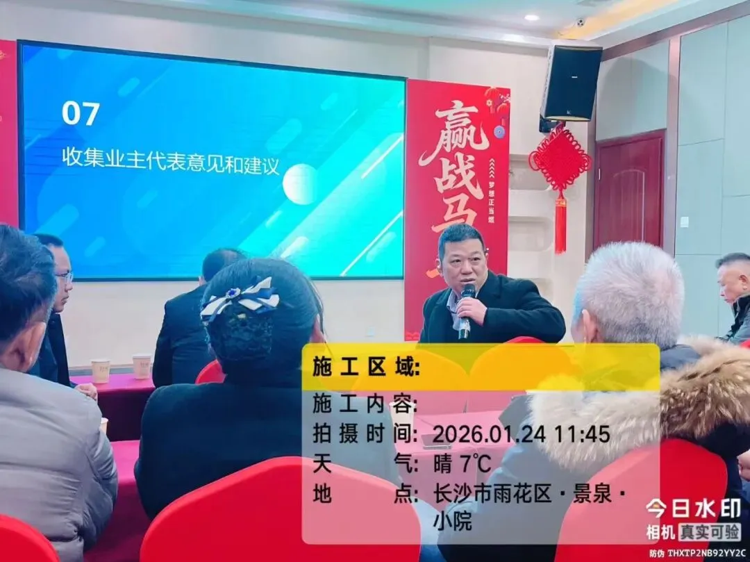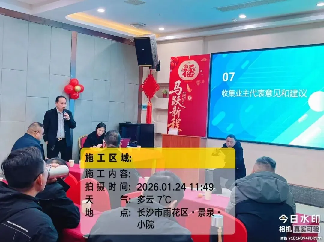 2026年1月24日,德庆水韵山城小区第二届业委会2025年工作总结暨2026年工作推进会议在景泉小院胜利召开。会议共有第二届业主委员会委员、监委会委员、楼栋长及业主代表近40余人参加,湖南思居园物业管理有限公司主要负责人参加会议。