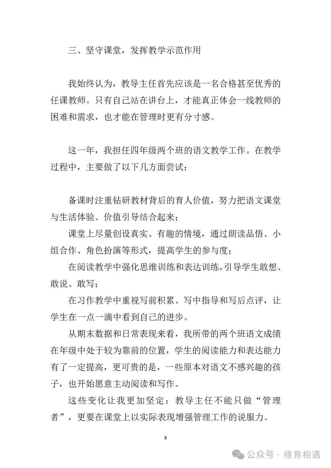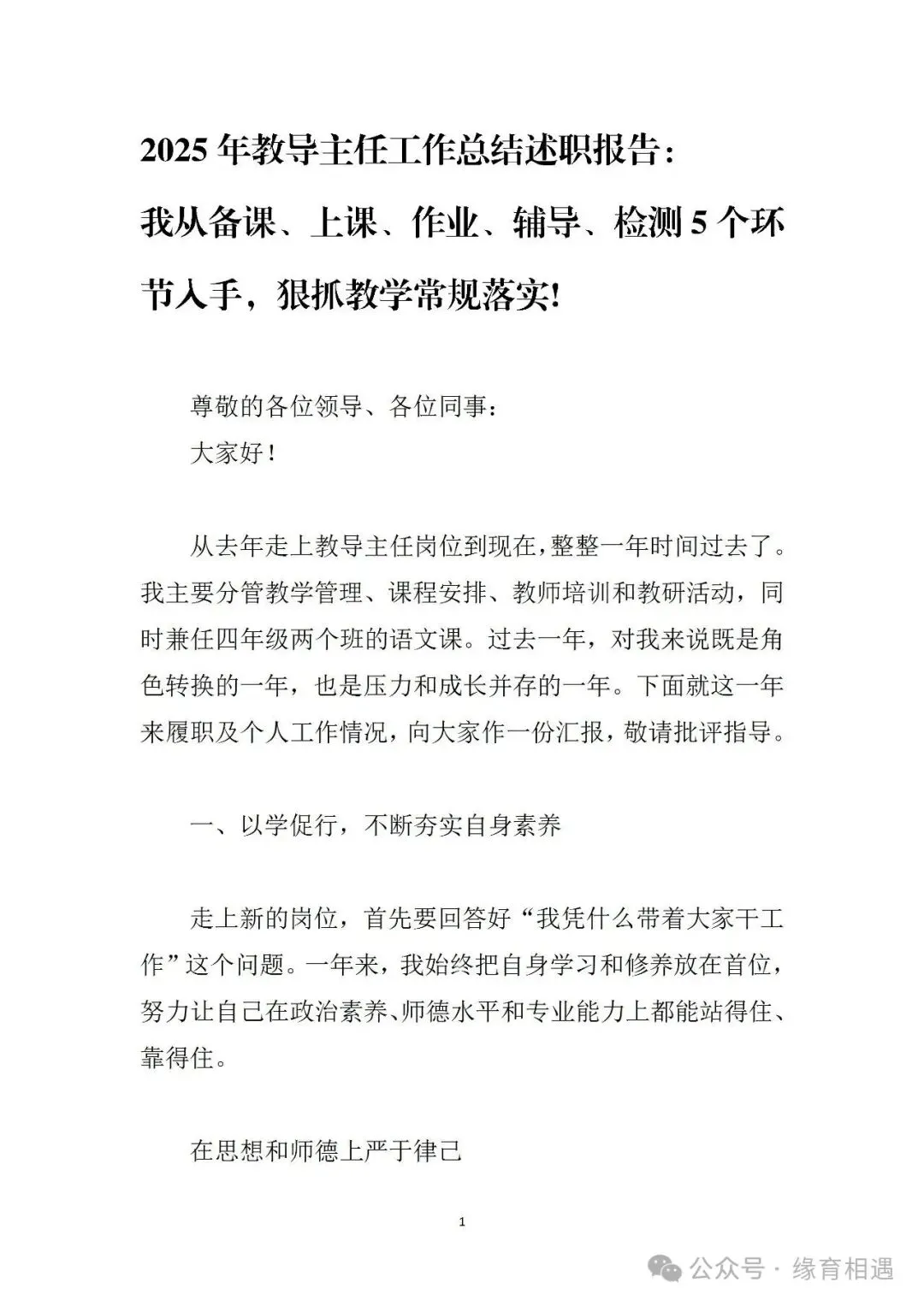 >2025年教导主任工作总结述职报告:我从备课、上课、作业、辅导、检测5个环节入手,狠抓教学常规落实!