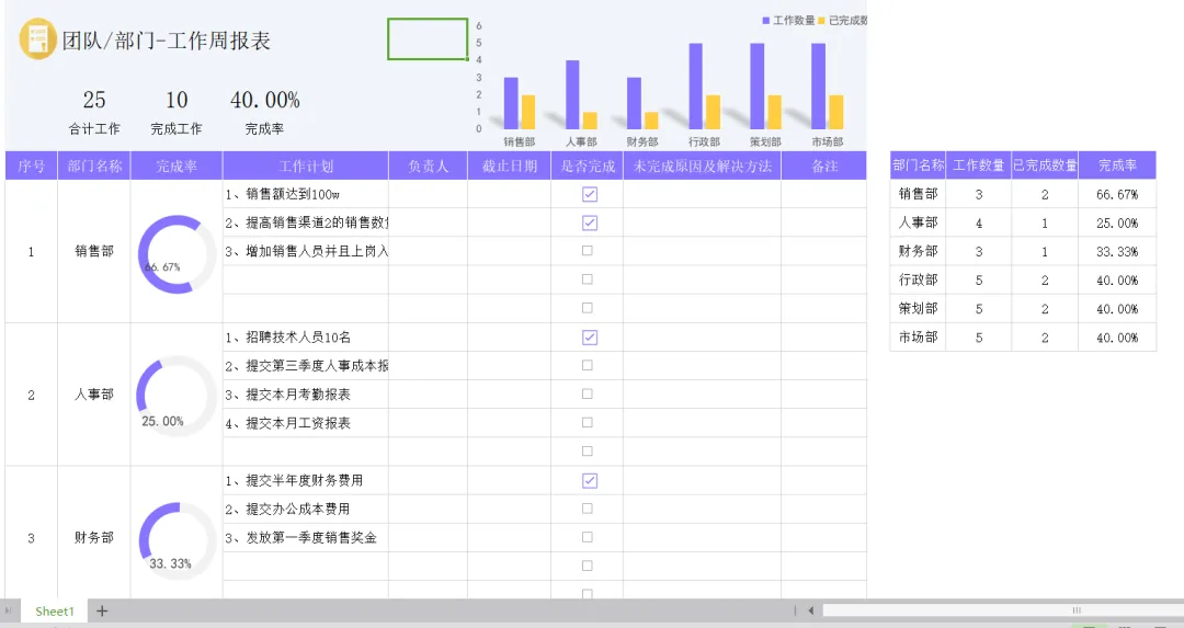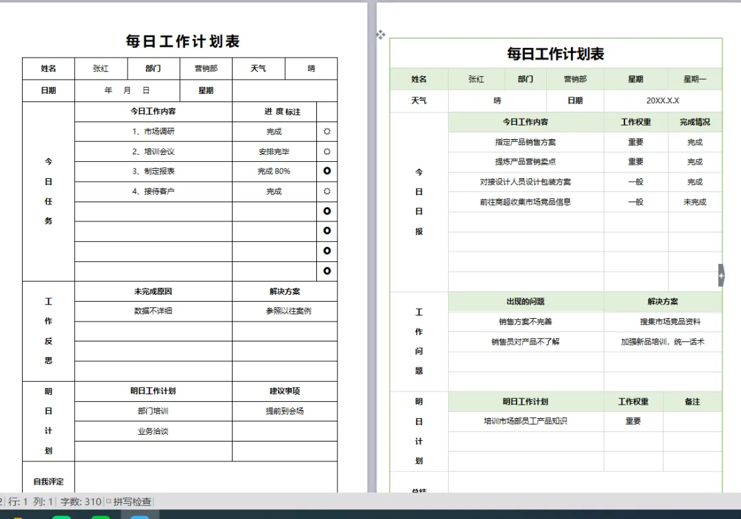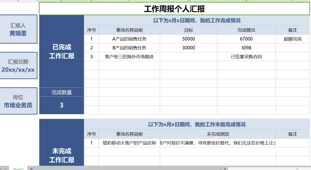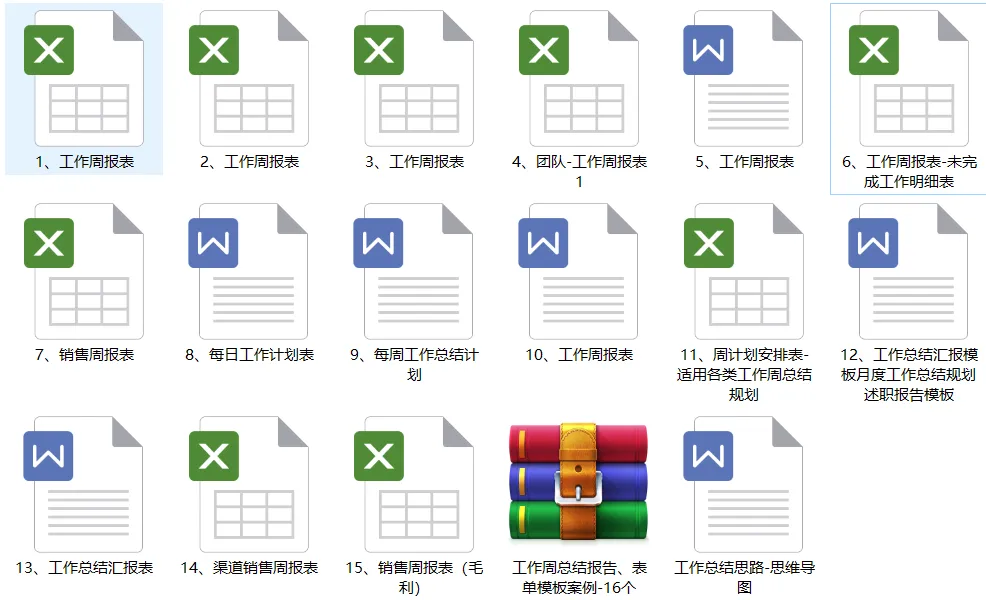 1、工作周报表