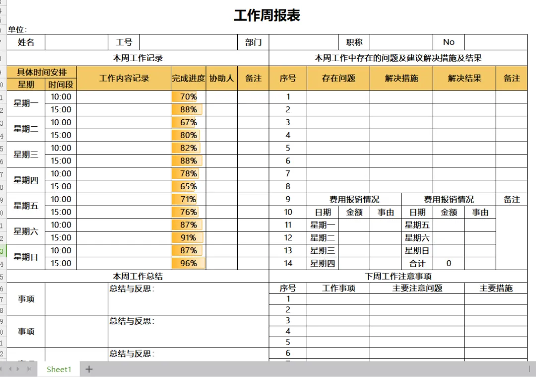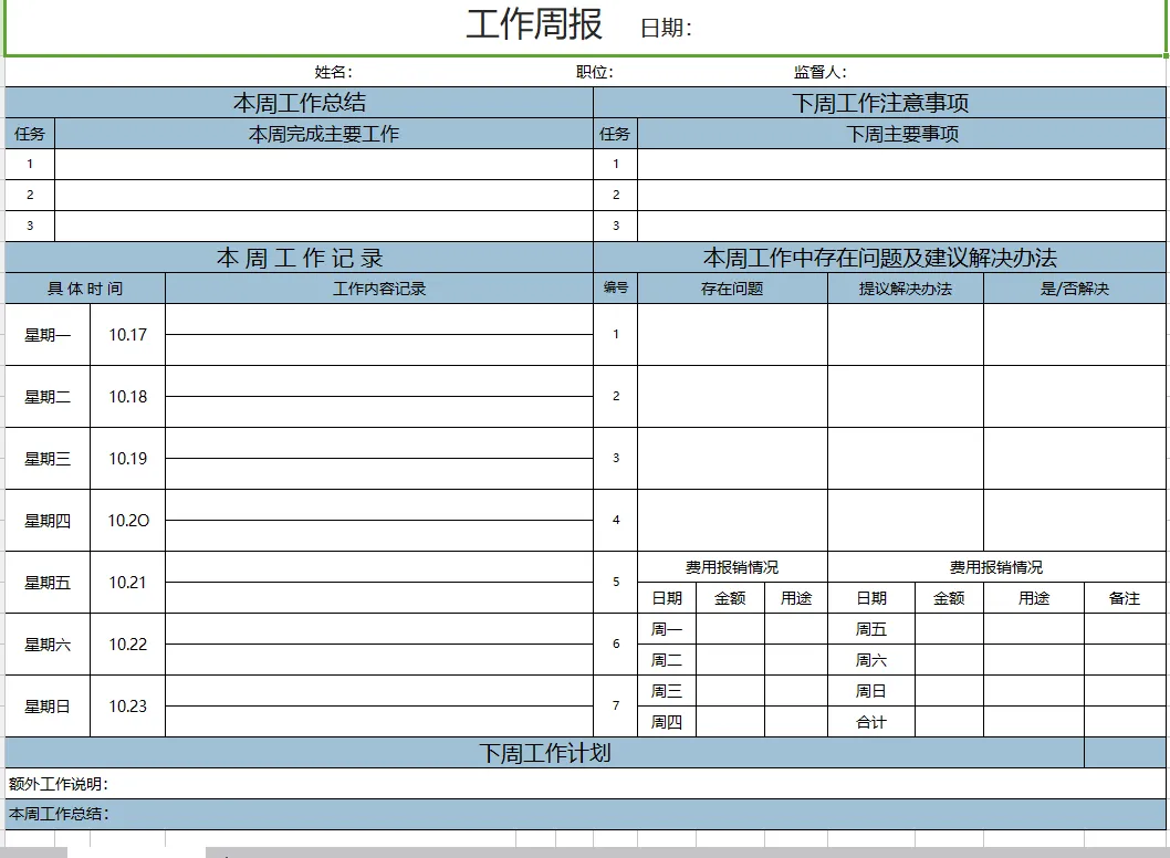 10、工作周报表