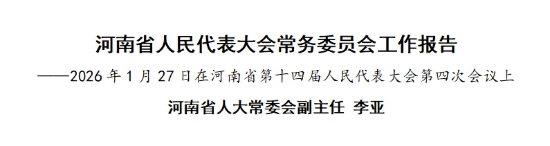 2026年是“十五五”开局之年。省人大常委会工作的总体要求是:坚持以习近平新时代中国特色社会主义思想为指导,深入学习贯彻党的二十大和二十届历次全会精神,深入学习贯彻习近平总书记关于坚持和完善人民代表大会制度的重要思想,认真贯彻落实党的二十届四中全会和中央经济工作会议部署,深入学习贯彻习近平总书记在河南考察时重要讲话精神和关于河南工作的重要论述,认真落实省委十一届九次、十次全会和省委经济工作会议精神,坚持党的领导、人民当家作主、依法治国有机统一,在省委坚强领导下,积极践行和发展全过程人民民主,聚焦“1+2+4+N”目标任务体系,坚持稳中求进、提质增效,扎实履行好立法、监督、决定、任免等法定职责,充分发挥人大代表作用,持续加强“四个机关”建设,推动新时代人大工作高质量发展,为“十五五”开好局、起好步提供有力法治保障。