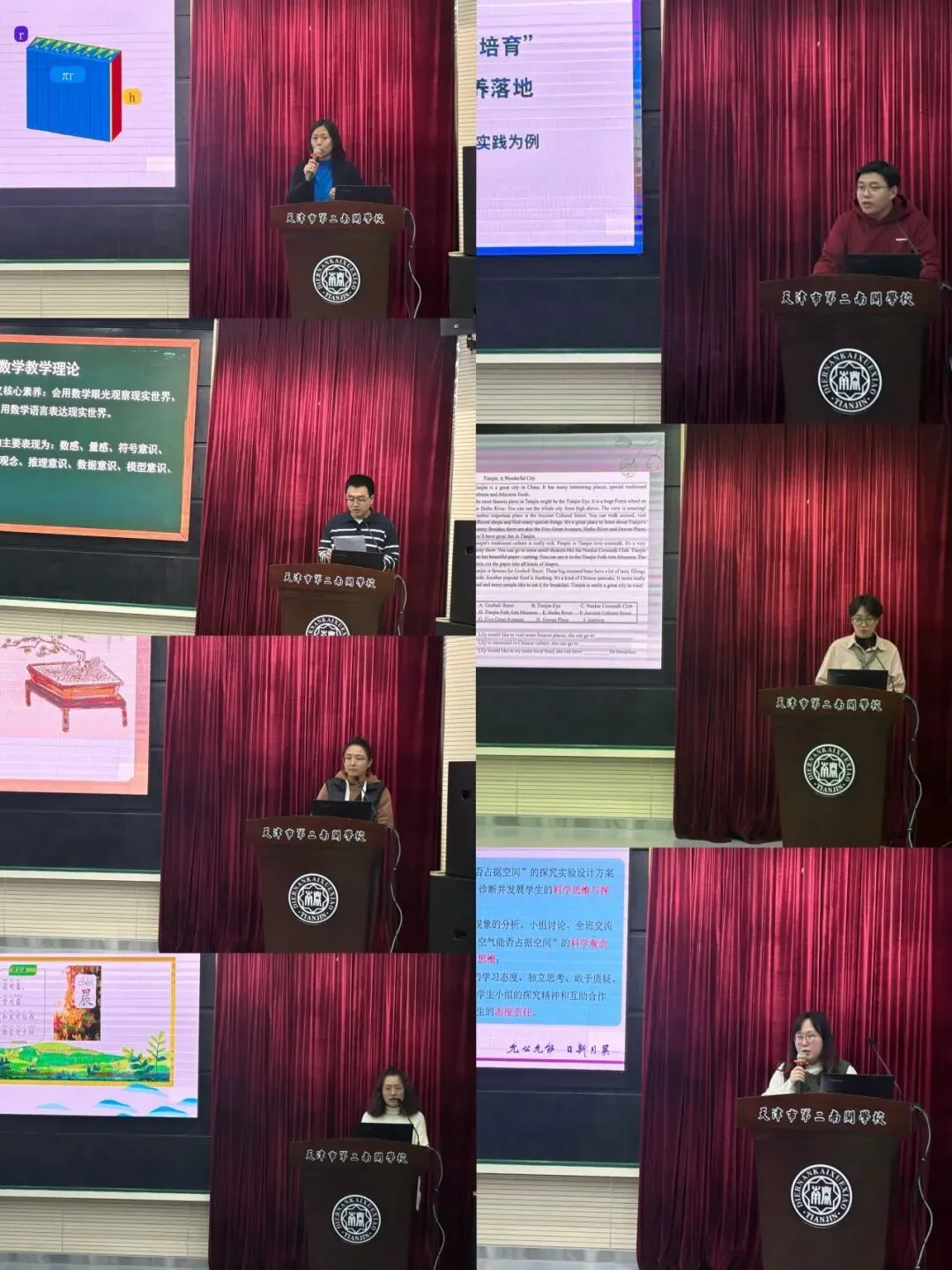 随后,7名小学部骨干教师结合语、数、英、科各学科教学实际,依托新课标,依次分享落实核心素养的教学实践案例与深度思考,从教学设计的匠心巧思到课堂生成的灵活把控,再到课后三阶单元作业设计探索,内容详实、亮点频现,尽显小学部教师平时深耕课堂、用心钻研、勇于实践的风采。