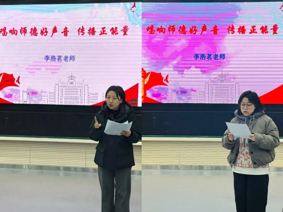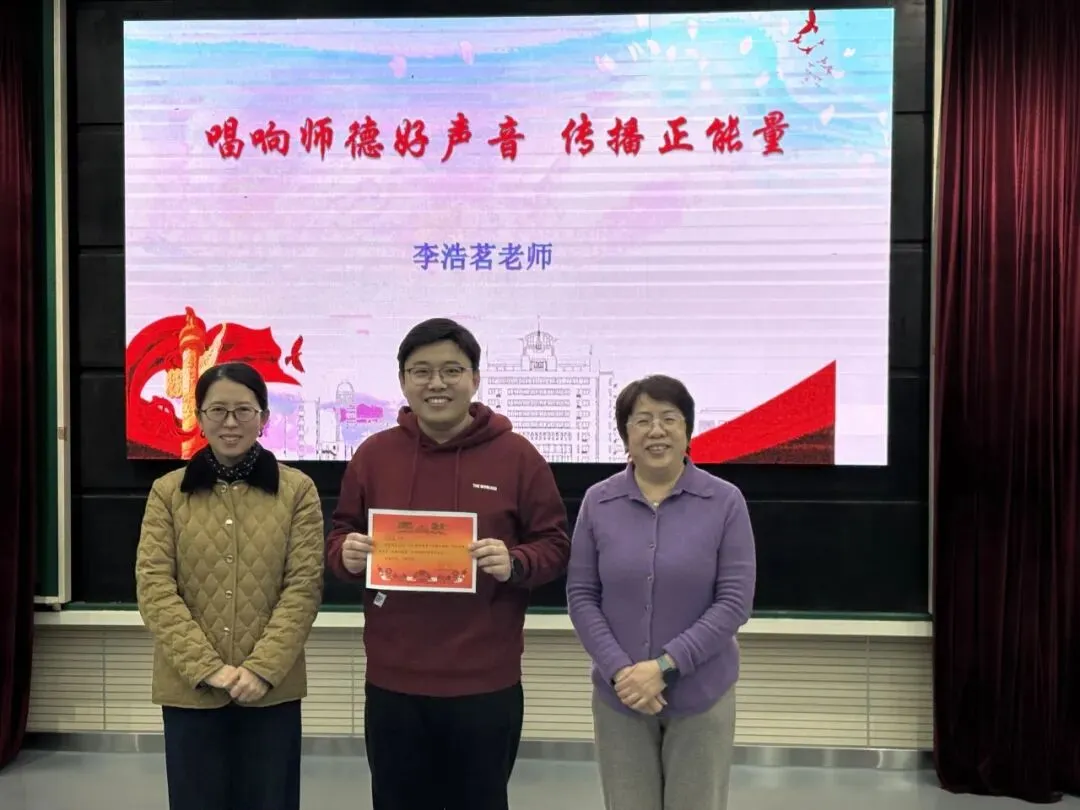 大会特别设置“唱响师德好声音”表彰环节,小学部李老师获评该荣誉。两位工作伙伴夸夸老师,李老师和刘老师现场分享了其工作点滴,风趣夸赞李老师才是小学部里的“夸夸能手”,更是工作中的“实干达人”。现场掌声热烈,榜样力量感染着在场的每一位教师,进一步弘扬了爱岗敬业、潜心育人的优良师风。
