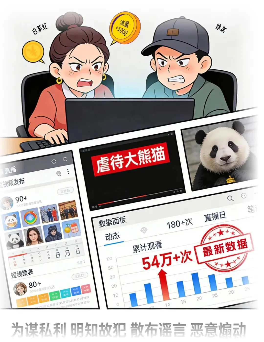 ——“白某某、徐某散播虐待大熊猫等虚假信息,煽动网民投诉、举报、辱骂,被判处寻衅滋事罪。”