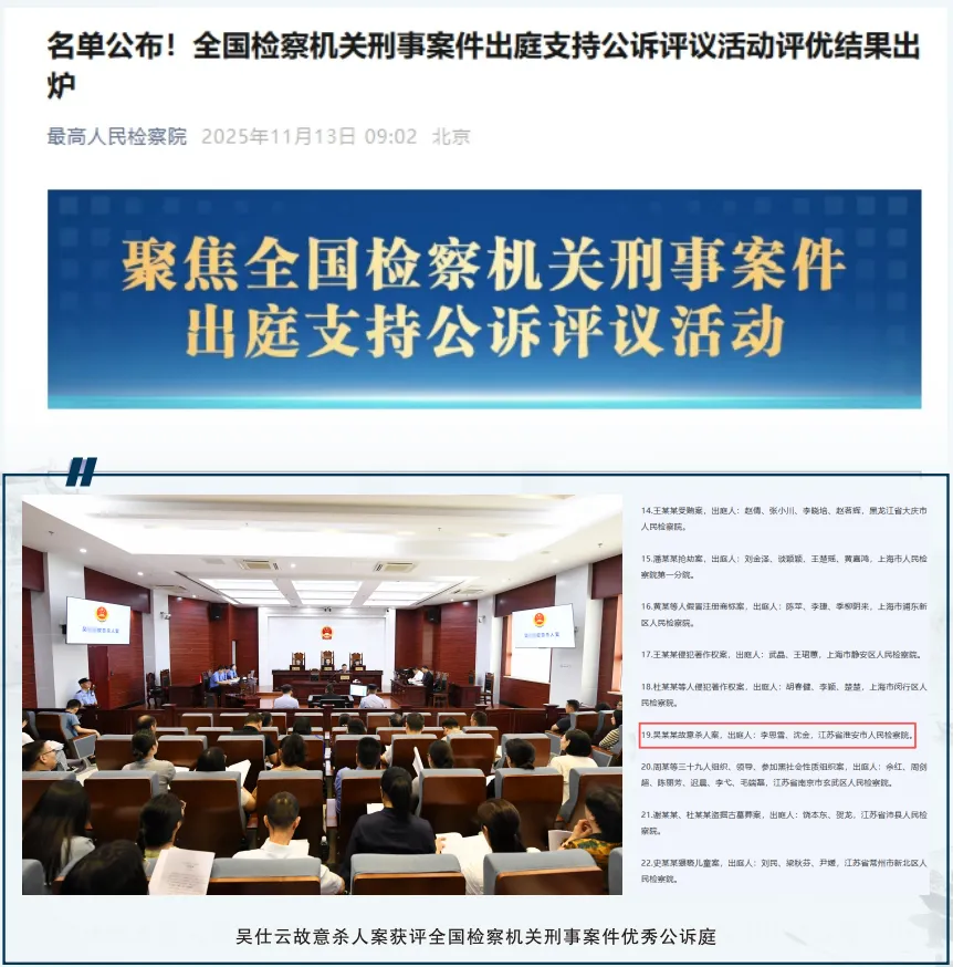 淮安市淮安区检察院依法履职,通过专家论证精准认定庆成门遗址公益受到损害事实,推动全面消除遗址损坏风险,实现文化遗址依法保护和活化利用,以法治之力守护中华文脉,该案获评最高检大运河“三名”保护公益诉讼典型案例、全省检察机关“书记出题”典型案例。