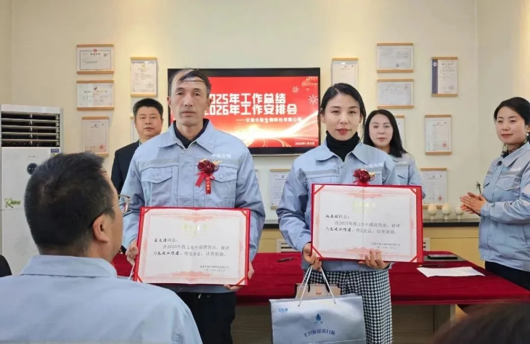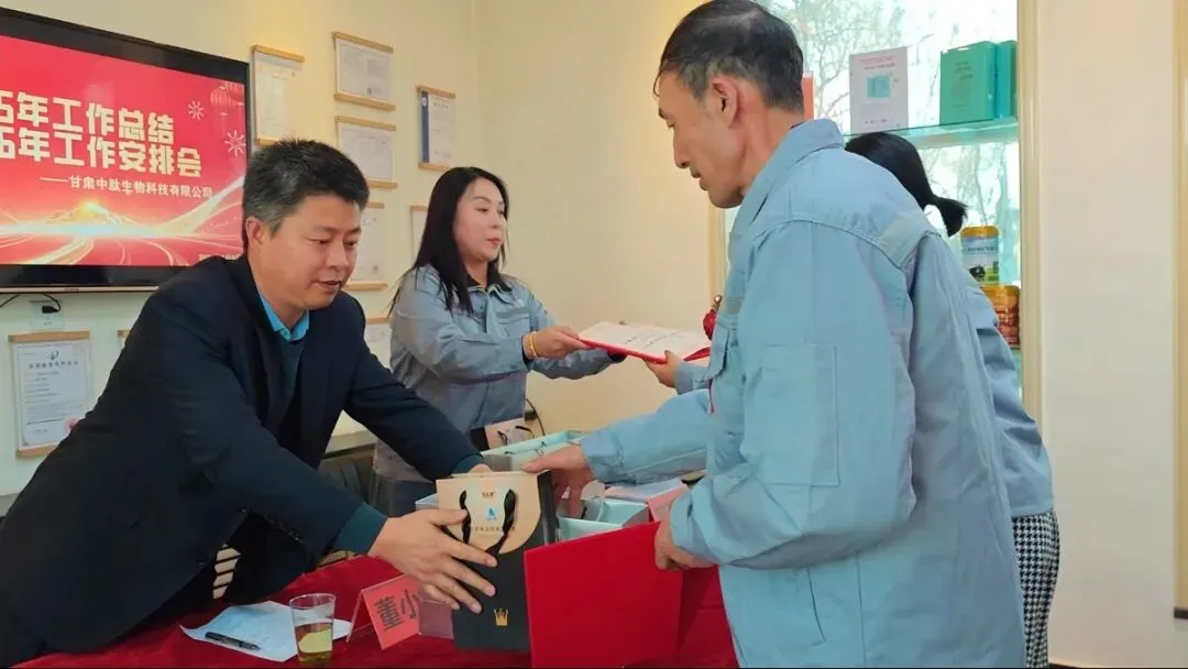 会议最后,集团领导发表重要讲话。首先对公司2025年取得的成绩表示肯定,向辛勤付出的全体员工及获奖先进个人致以诚挚的感谢。集团领导寄语全体员工,要以先进为榜样,以目标为指引,在2026年携手并肩,推动公司发展迈上新台阶,让中肽生物成为平凉本土生物科技品牌的标杆,为地方经济发展贡献更多力量。