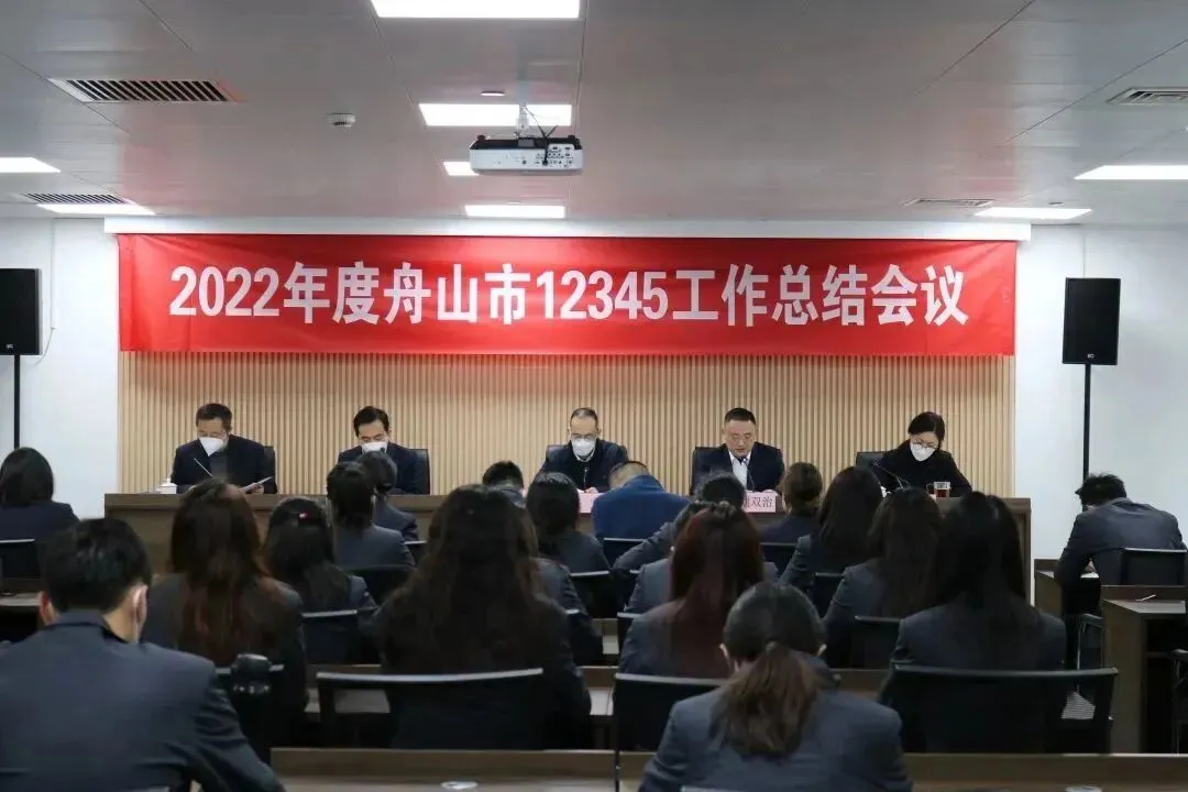 1月13日上午,市12345中心召开2022年度工作总结会议,除当班话务员外中心全体人员和电信舟山分公司管理团队参加。