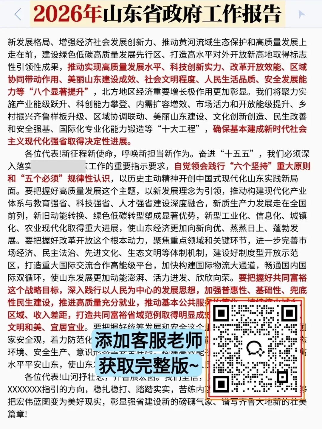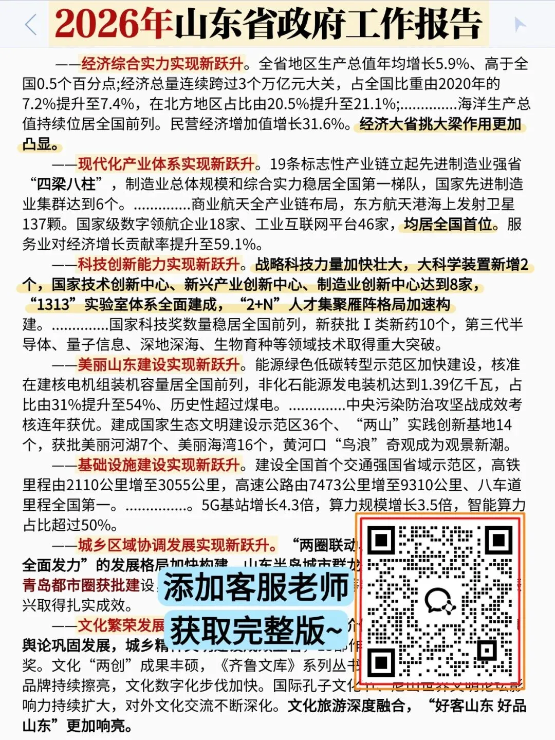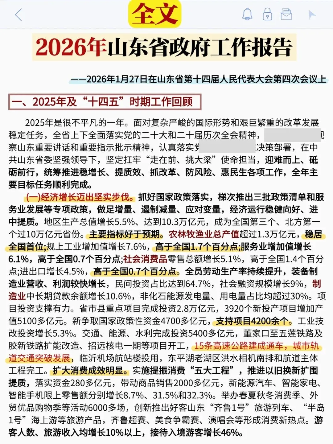 以下展示《山东省政府工作报告》部分内容