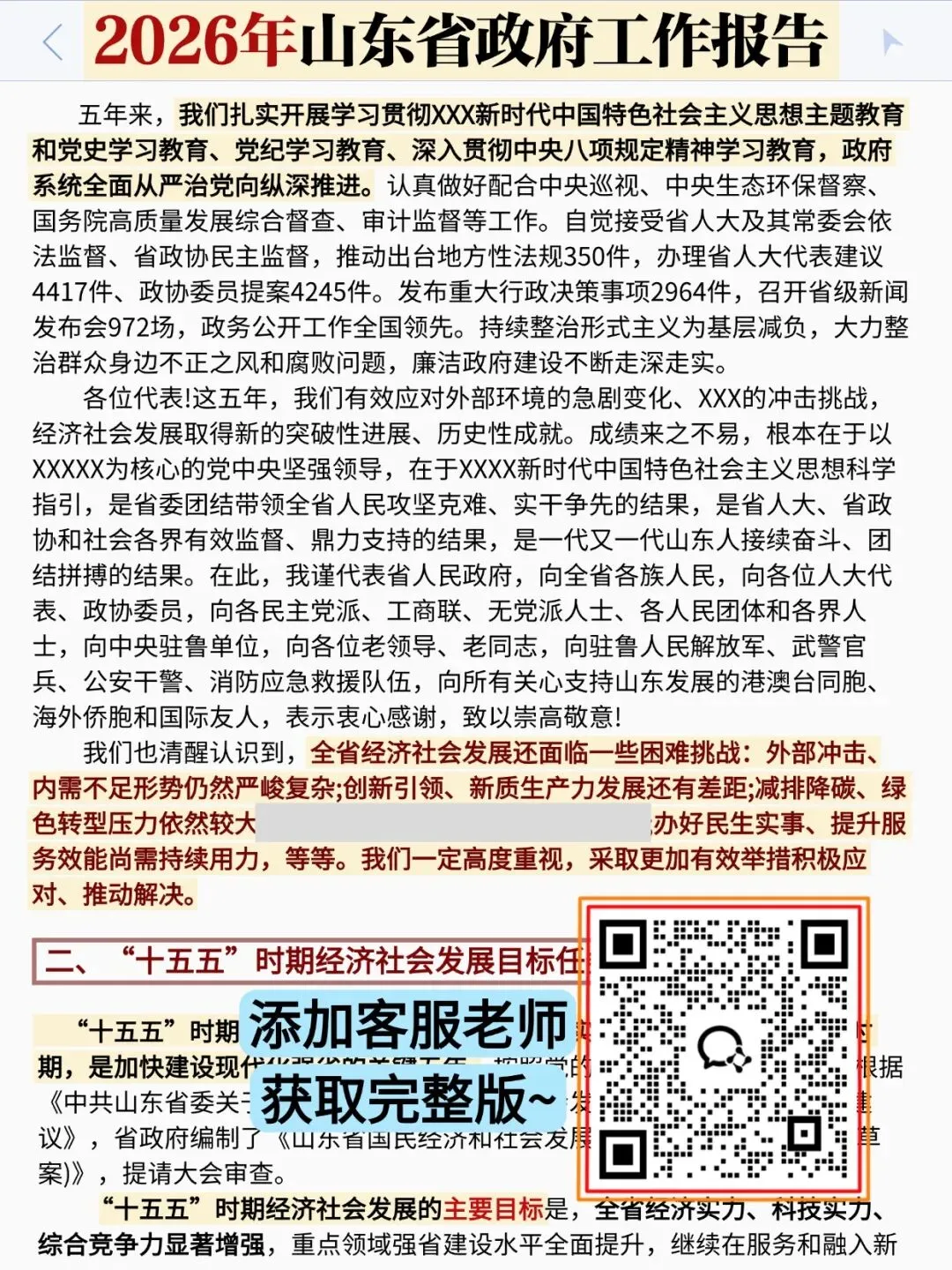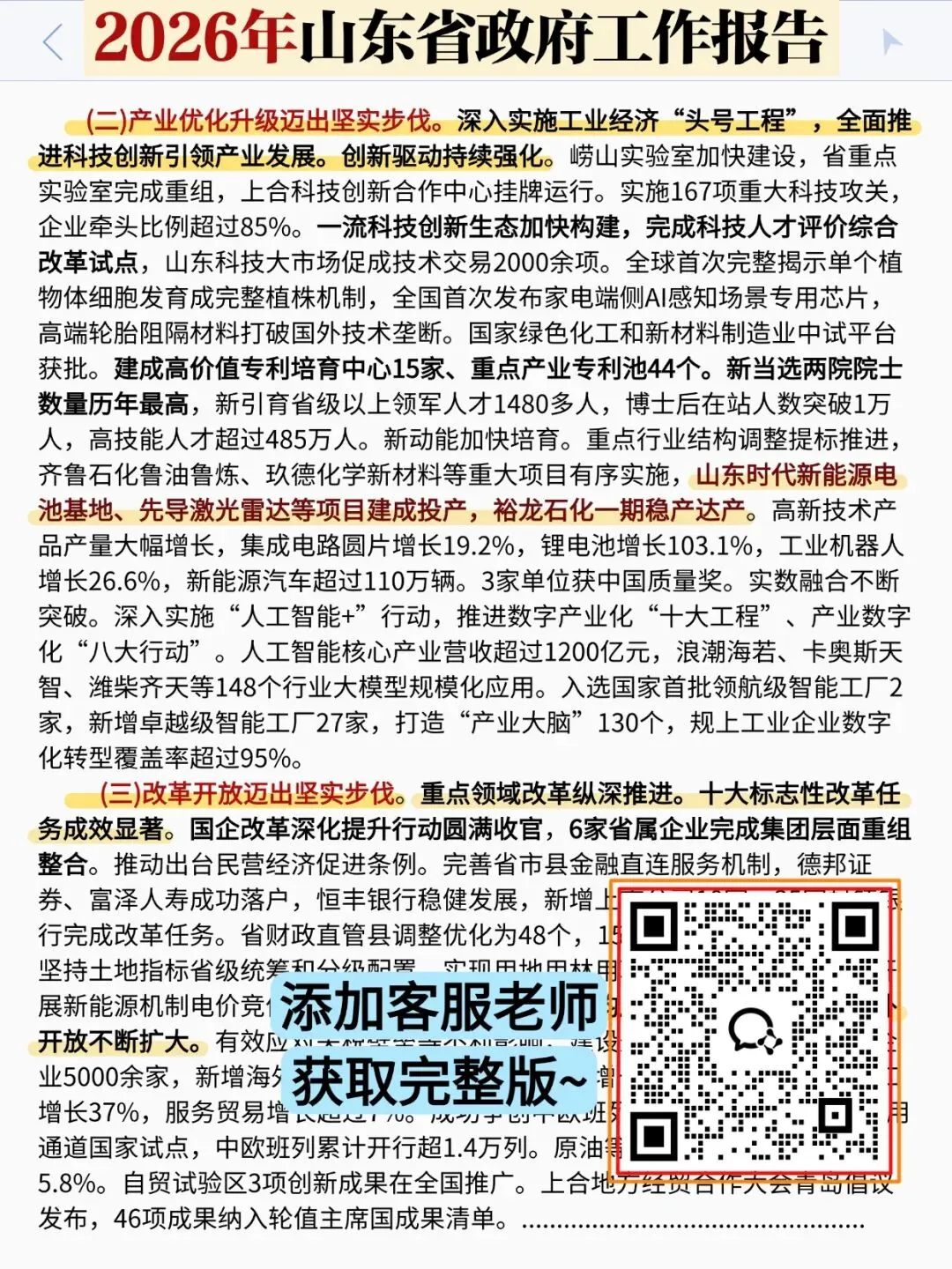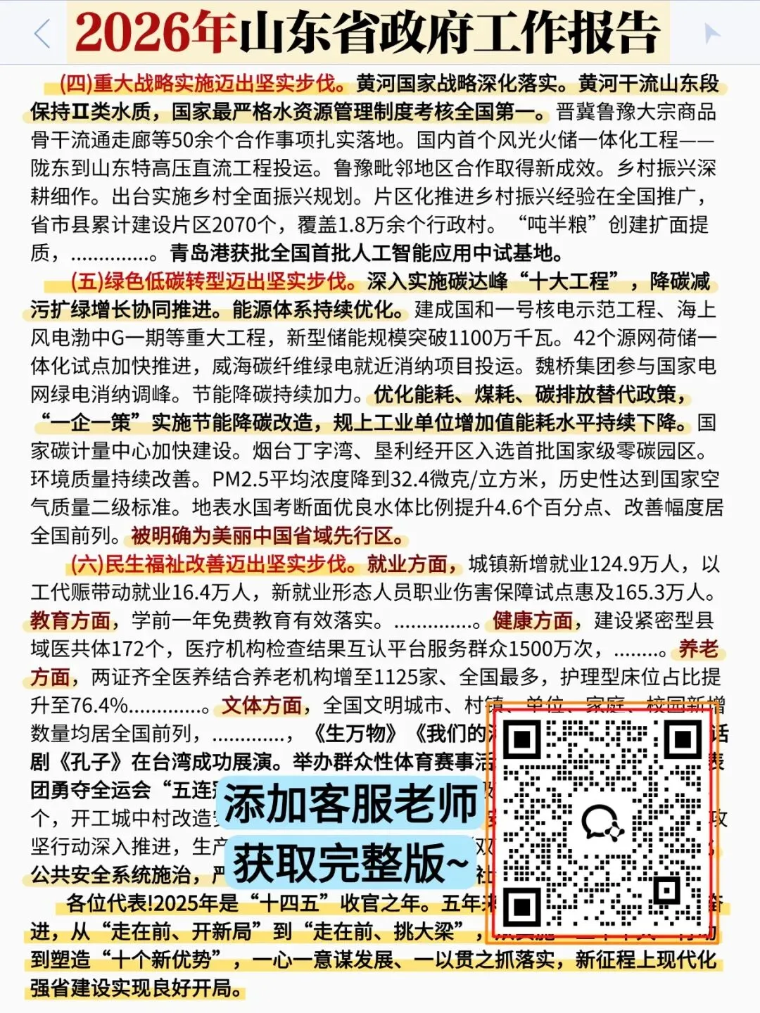 以下展示《山东省政府工作报告》部分内容