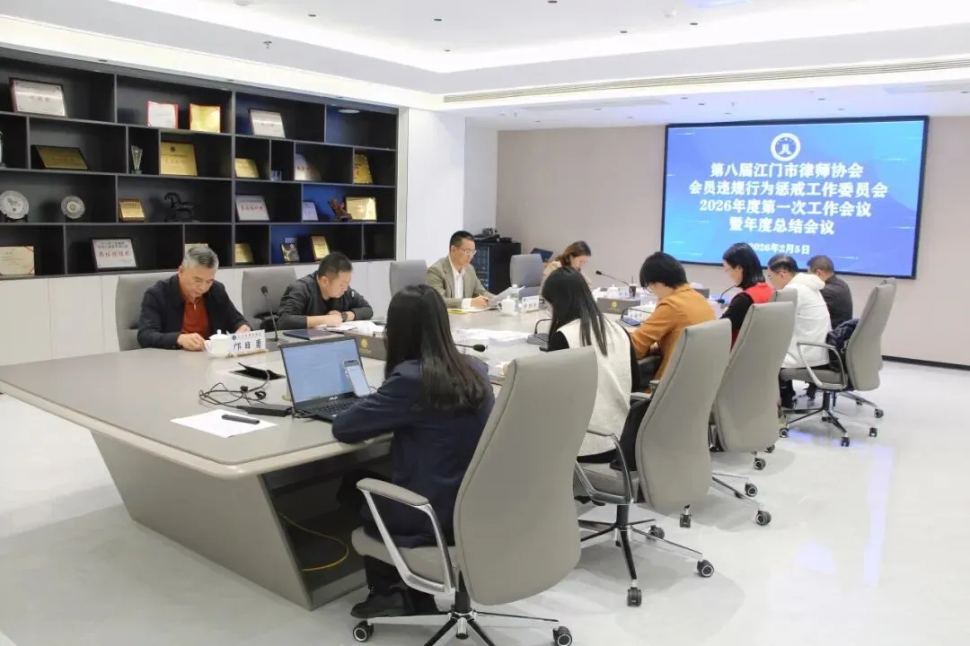 2026年2月5日下午,市律协会员违规行为惩戒工作委员会(以下简称“惩戒委”)组织召开2026年第一次工作会议暨年度工作总结会议。市律协副会长兼惩戒委主任许炳权及惩戒委委员参加会议,市司法局律管科科长、市律协秘书长慕程远,市律协监事长邝日勇等列席会议。会议由惩戒委副主任兼秘书长叶虹主持。