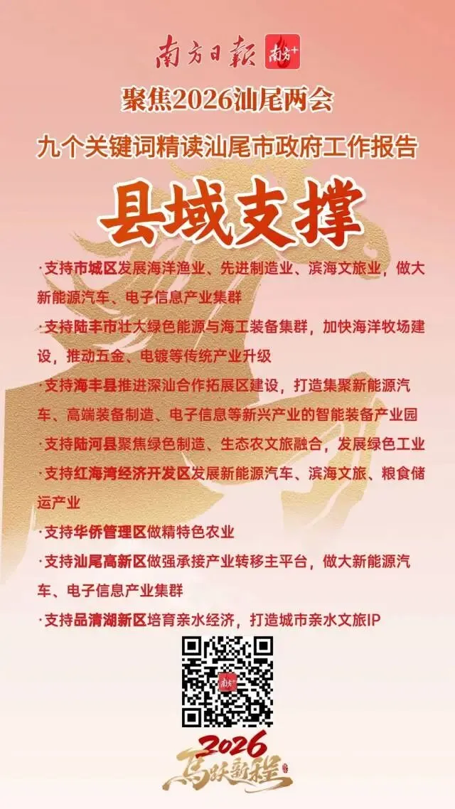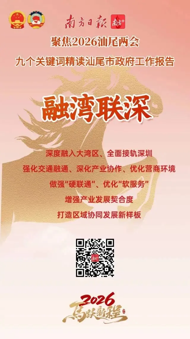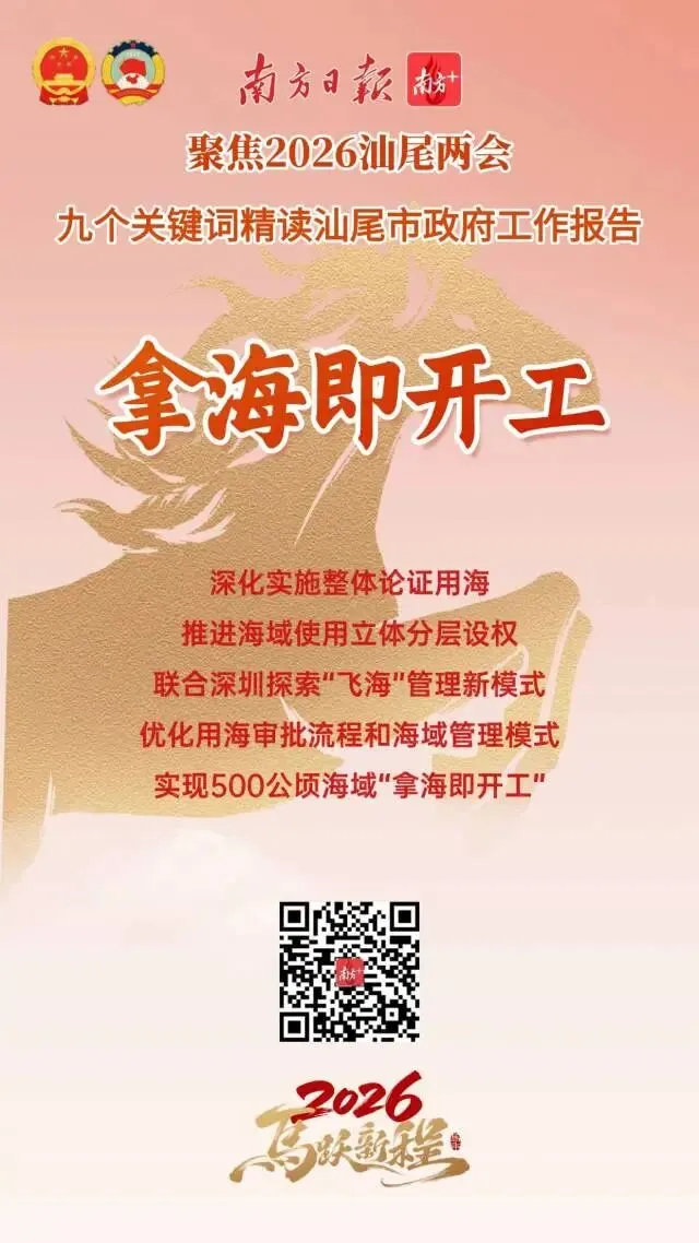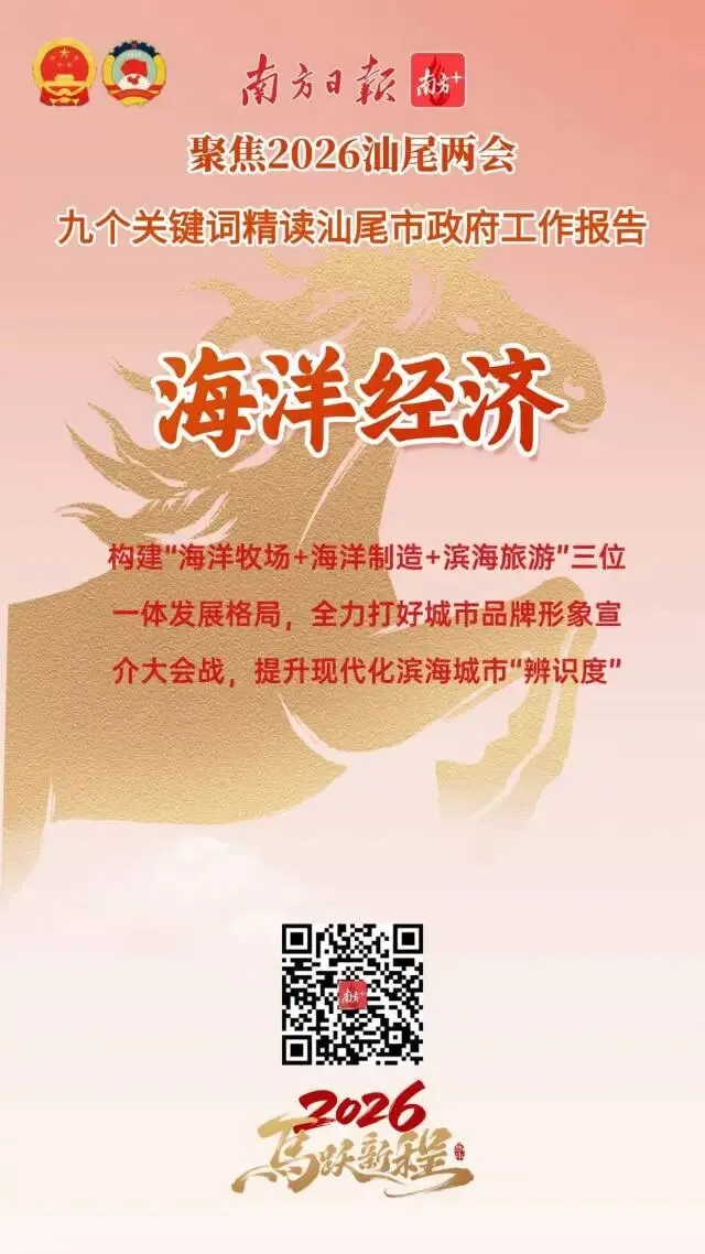 今年是“十五五”开局之年,也是汕尾持续强化在全省大局中“强堡重支”定位和“三地一样板”功能的奋进之年。从政府工作报告中,我们梳理了9个关键词,从中感受汕尾2026年马跃新程的精气神!