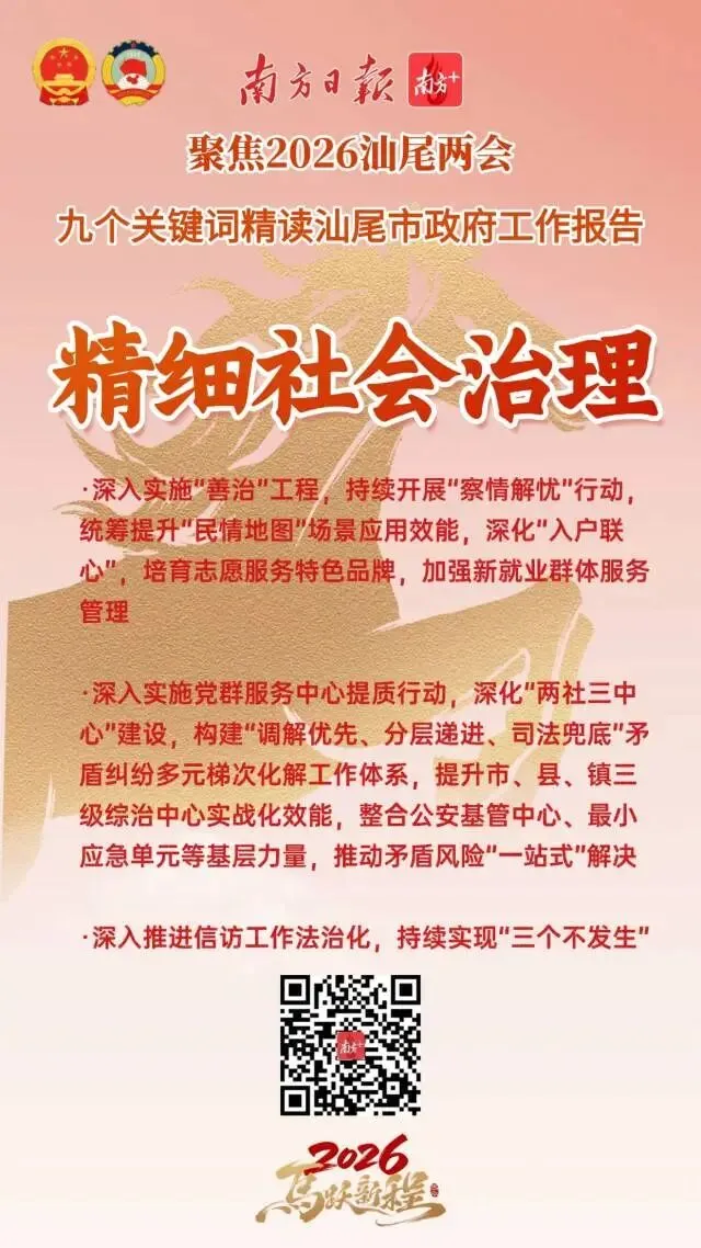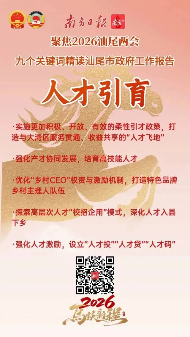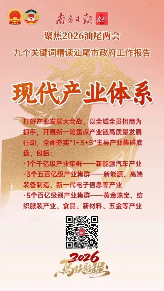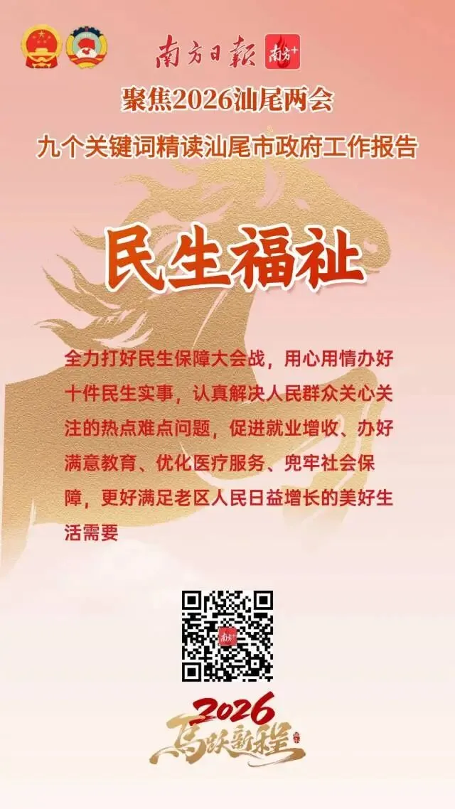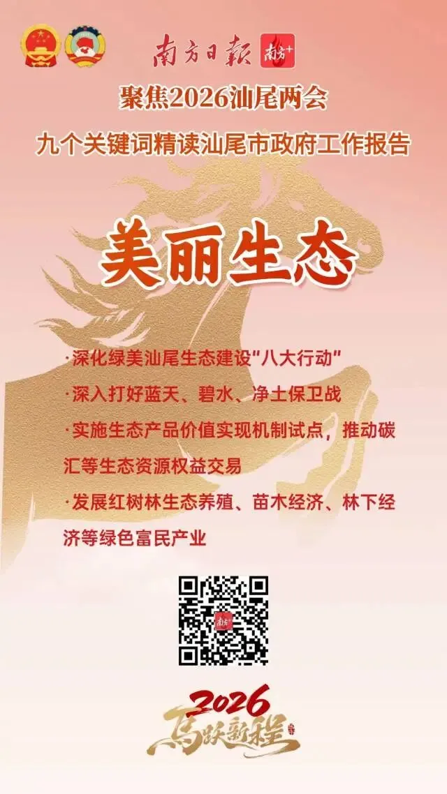 今年是“十五五”开局之年,也是汕尾持续强化在全省大局中“强堡重支”定位和“三地一样板”功能的奋进之年。从政府工作报告中,我们梳理了9个关键词,从中感受汕尾2026年马跃新程的精气神!