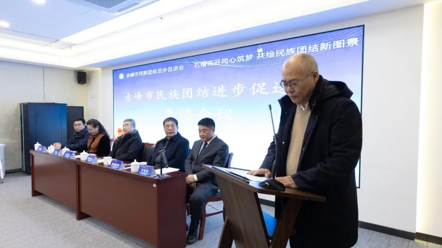 2026年1月31日,赤峰市民族团结进步促进会年终工作总结会在赤峰学院隆重召开。会议全面总结2025年市民促会工作经验,科学部署2026年重点任务,凝聚起各族各界同心筑梦、共促团结的强大合力。赤峰市民族事务委员会党组成员、副主任特木尔巴根出席会议并讲话,各会员单位代表及各界人士代表参加会议,共商发展大计。