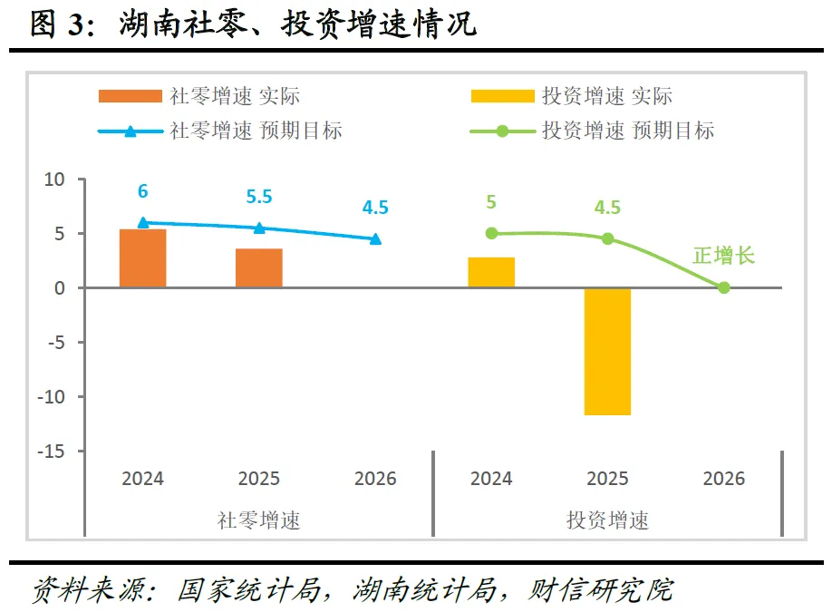 一是以服务消费提质带动整体消费恢复。报告将2026年社零增速目标设定为4.5%以上,较2025年实际增速提升1个百分点左右(见图3)。针对我省文娱消费活跃,但近年来居民消费意愿恢复偏慢的特征,重点提出开展现代服务消费提质行动,推动文体旅商融合,发展首发经济、银发经济、夜间经济,以“新供给”释放“新需求”。