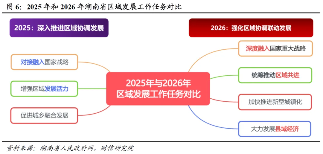 报告将区域发展的工作主线从2025年的“深入推进协调发展”升级为“强化协调联动发展”(见图6),核心在于“增强主体功能”,即通过精准定位省内各区域在全省及国家战略中的角色,实施差异化发展策略,以内外双向联动构建我省区域共进发展新格局。