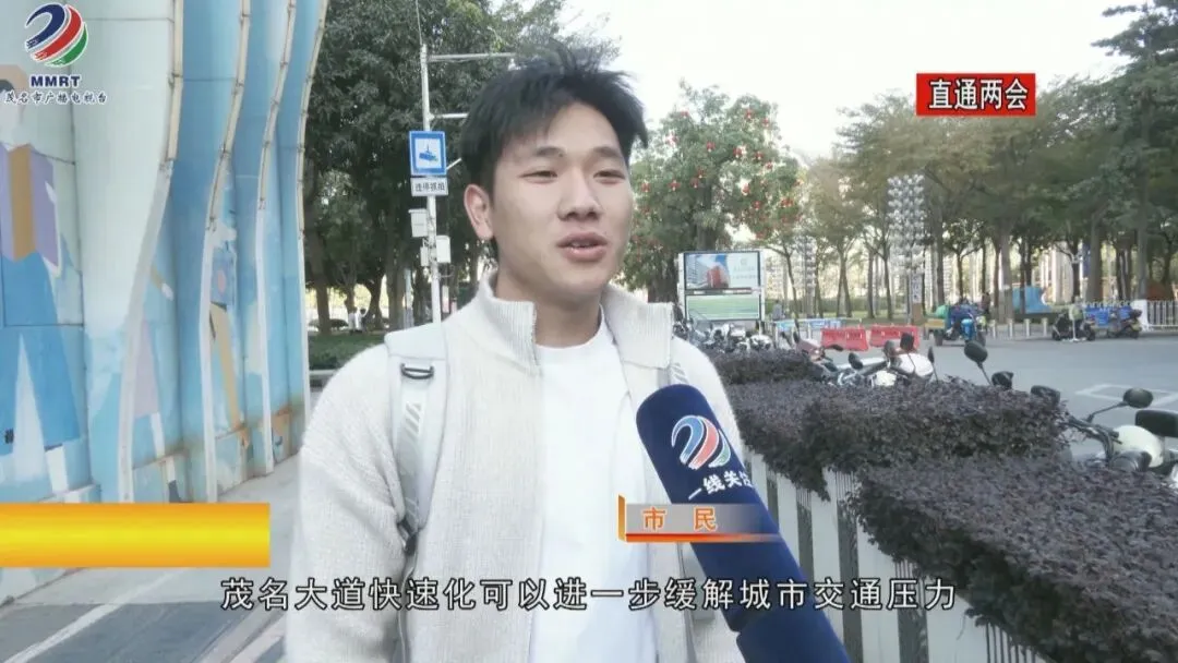 采访 市民:茂名大道快速化可以进一步缓解城市交通压力。还有广湛高铁的开通,从茂名到广州的时间大大缩短,这极大地便利了大家出行。而且,这也将带动我们茂名与周边地区的经济发展,为市民带来更多的就业机会和发展机遇。
